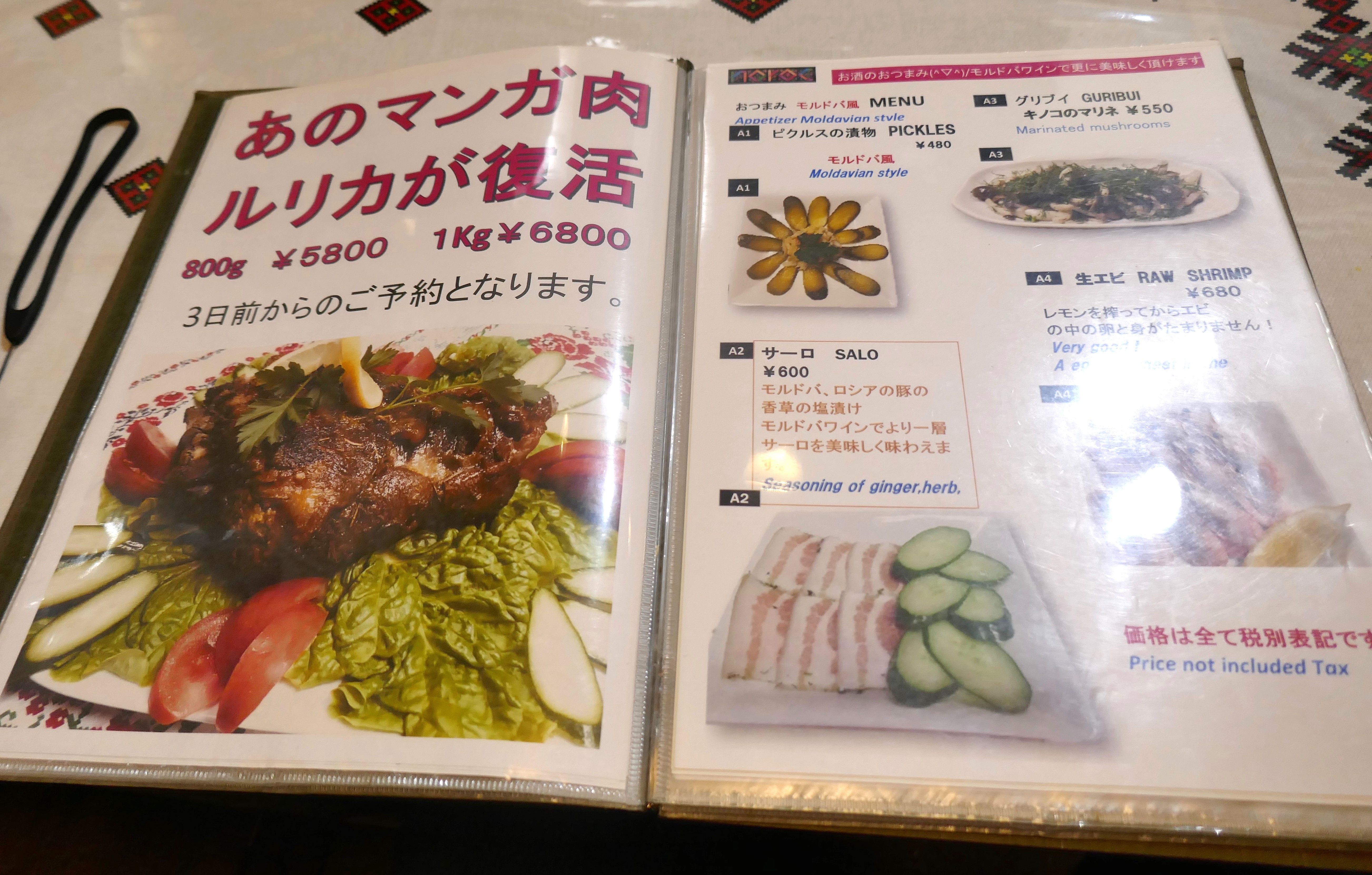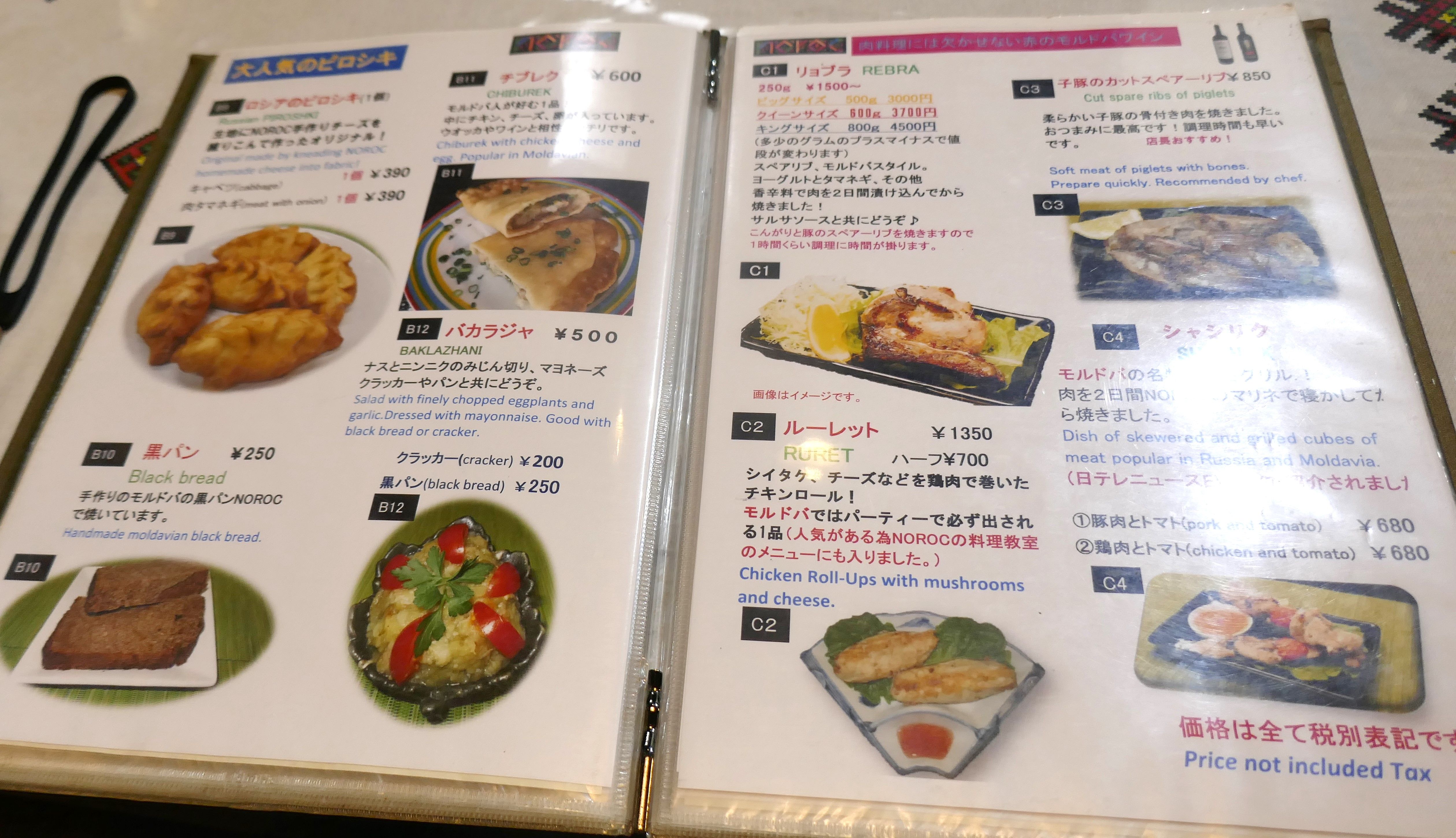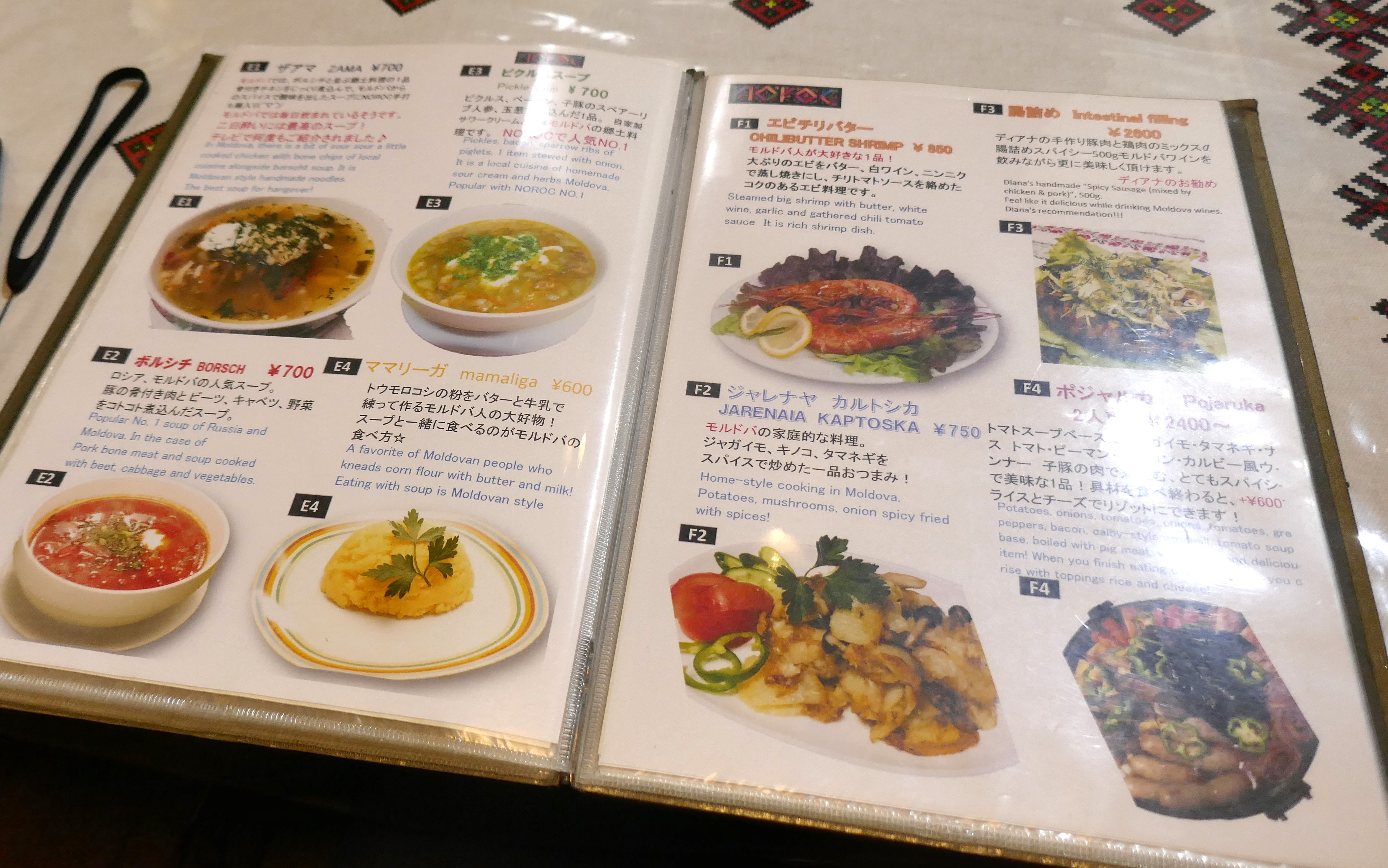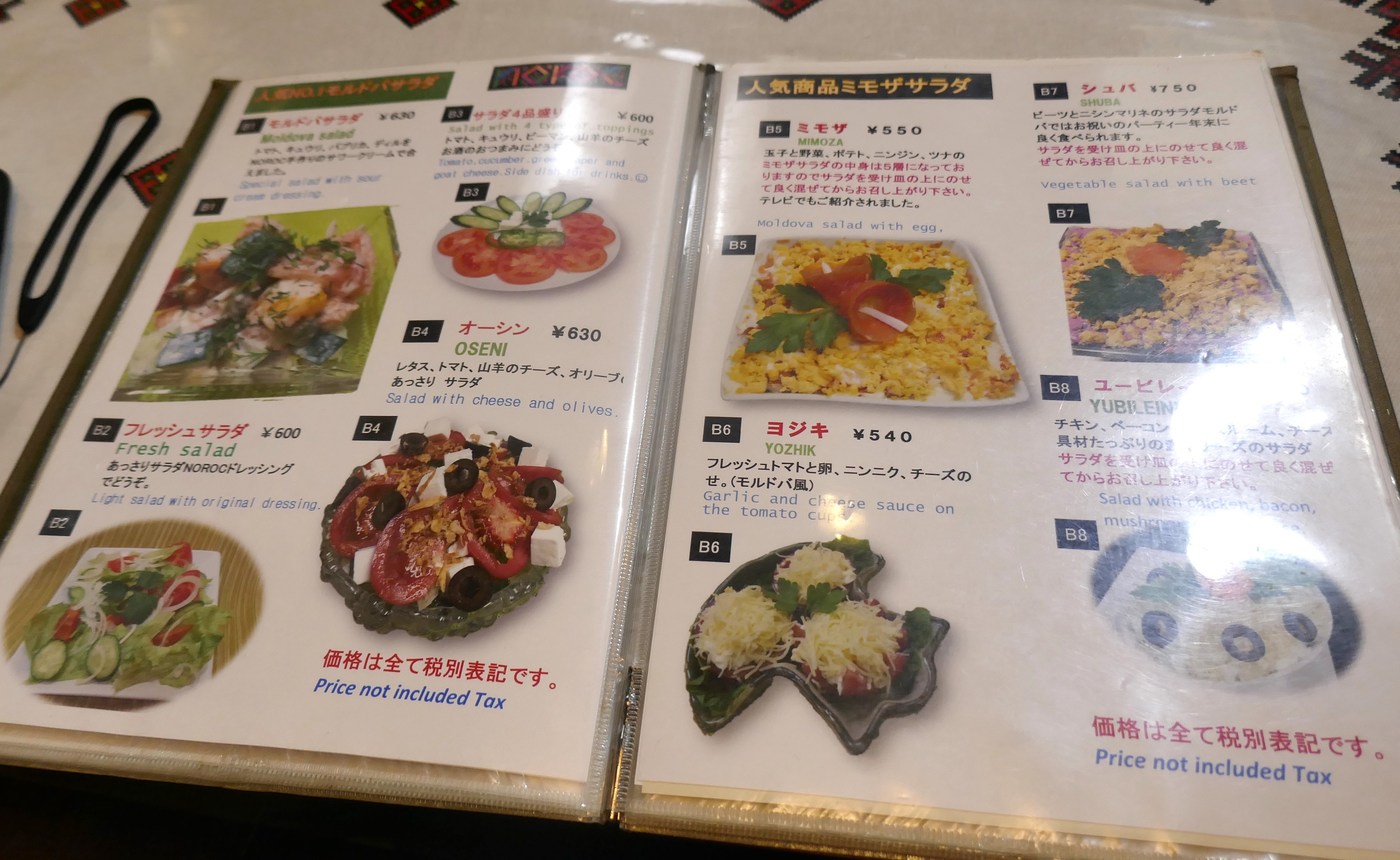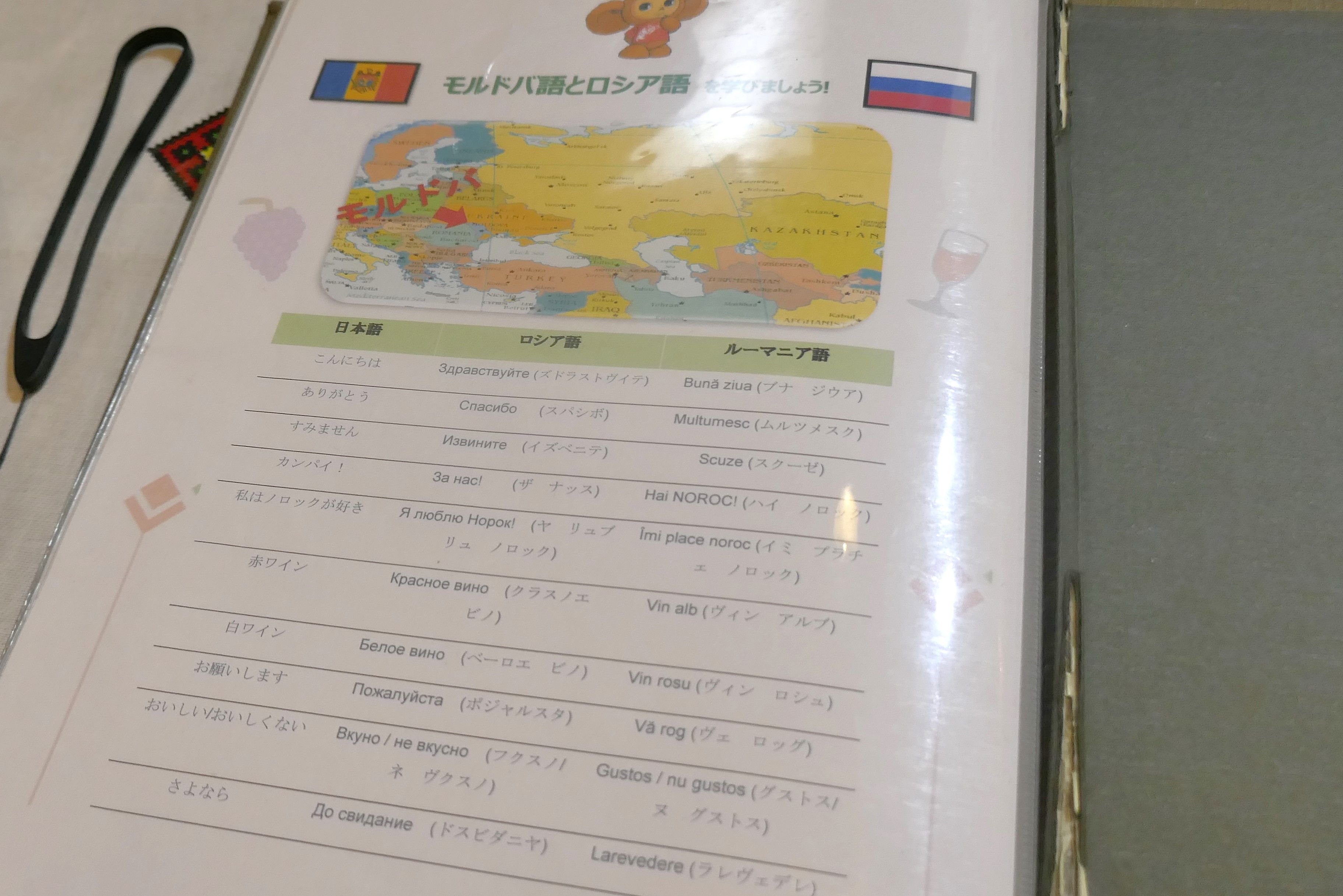 かつてソビエト連邦に属していた時の公用語はモルドバ語(ルーマニア語をベースにロシア的な表現を加えたもの)でしたが、今日ではルーマニア語が公用語らしく、ロシア語とルーマニア語でのちょっとした挨拶の紹介を乗せてメニューは以上です。