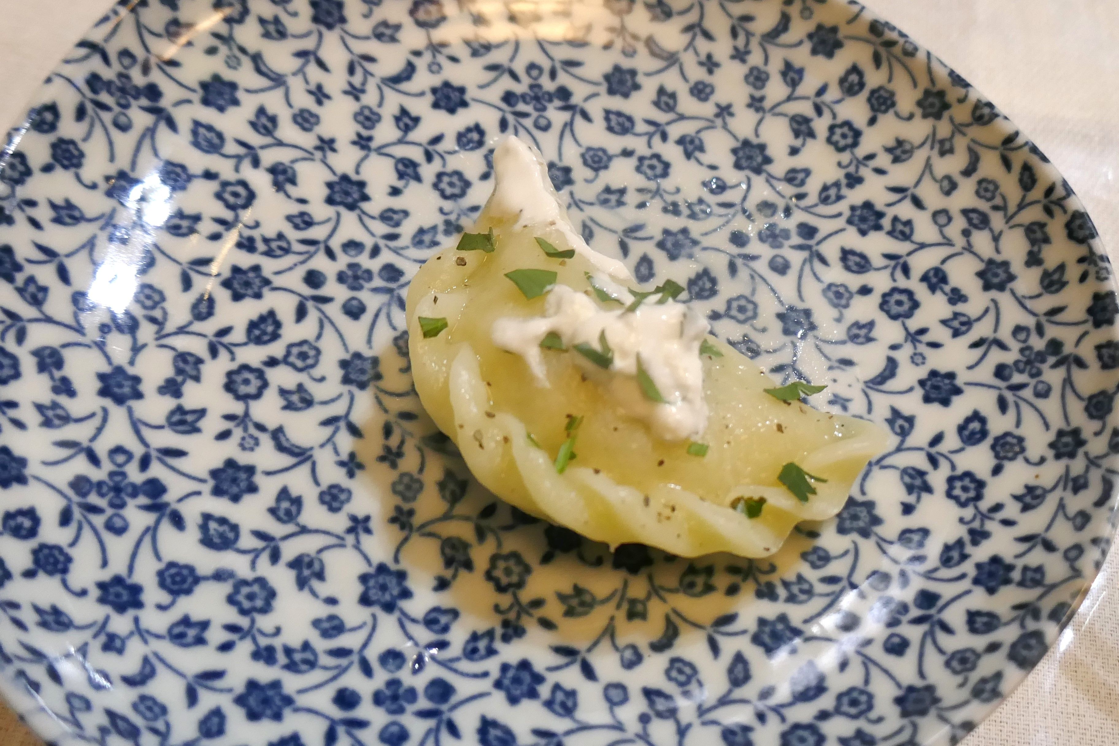 「コルッツナッシュ」は、モチモチ食感の生地の中にハーブの香りが効いたチーズがたっぷり!添えられていた爽やかな酸味が特徴なスメタナとの相性も最高!