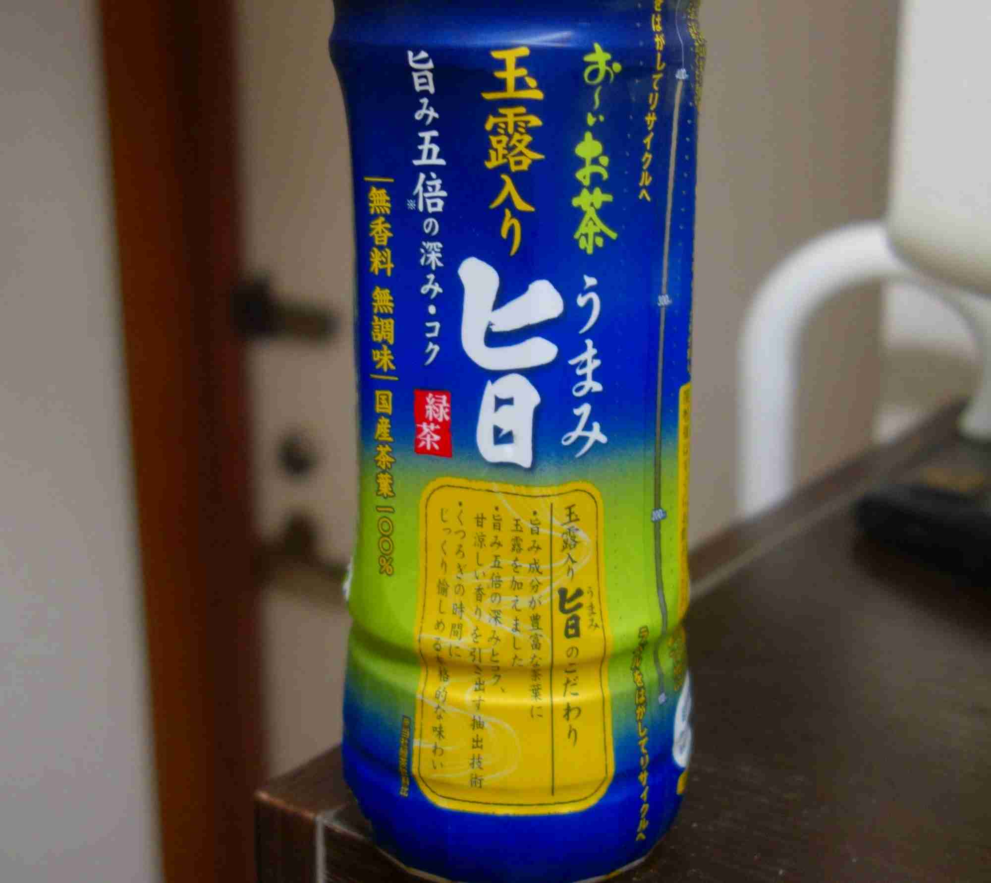 今日の飲み物は、株式会社伊藤園発売のお~いお茶玉露入り旨 旨み5倍の深み・コクです。
