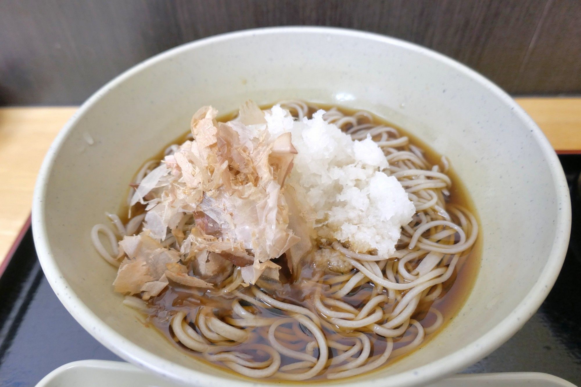 そばの注文後は、出来たてが楽しめるとのことで、しばし席に移動してそばが出来上がるのを待つことにします。