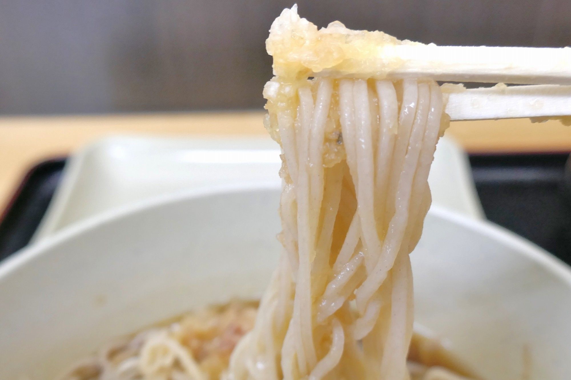 早速食べてみると、そばはコシとそば粉の香りが力強く、かつおだし濃いめなタレともマッチ!