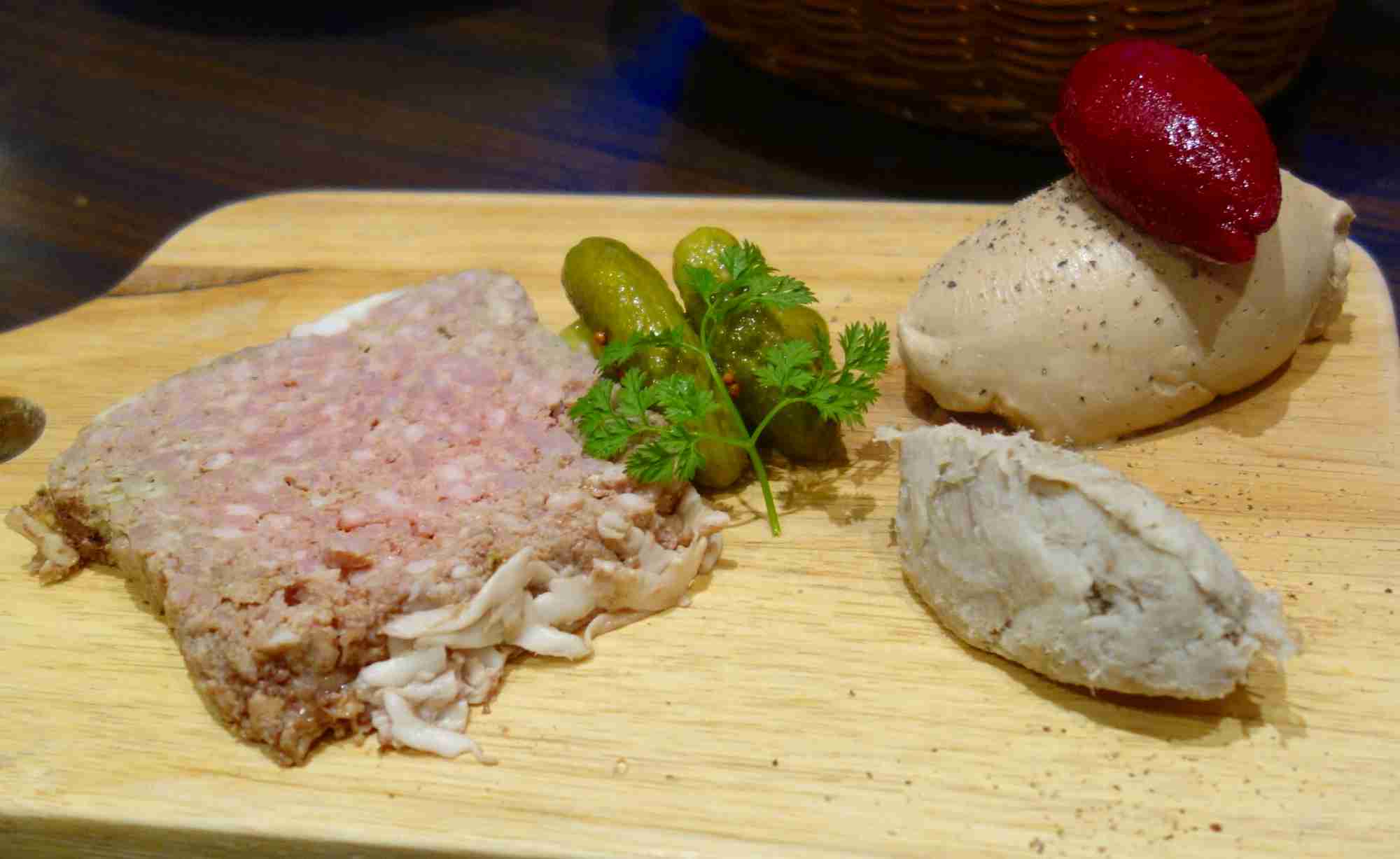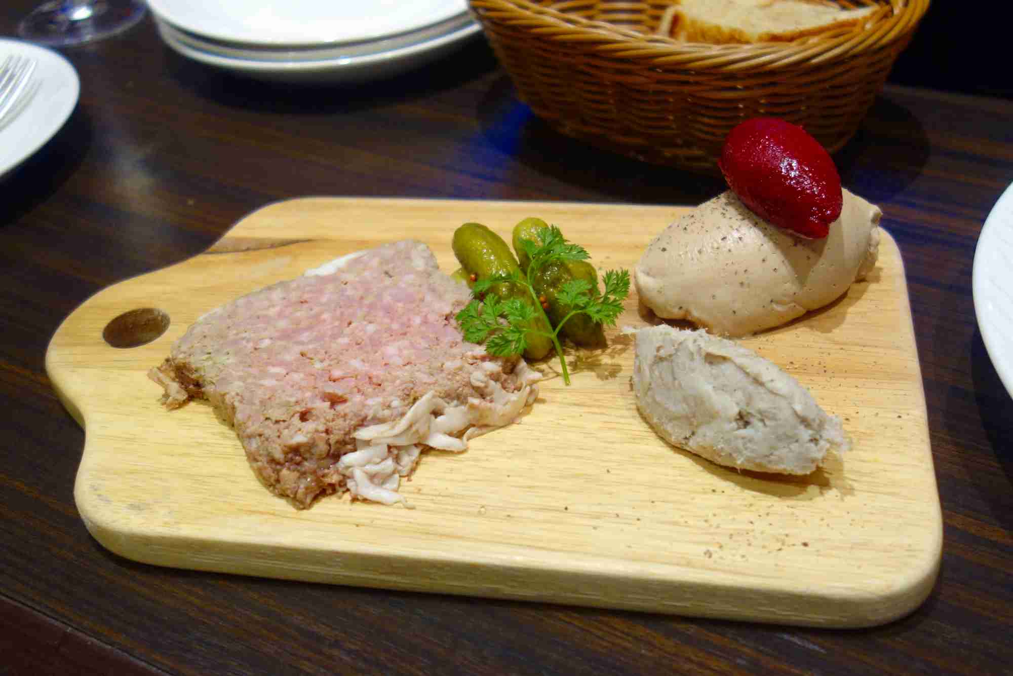 特に左手のピンク色に染まるお肉の旨味特濃なパテがウマウマで、カシスソースを乗せたフォアグラのパテもいい感じ!