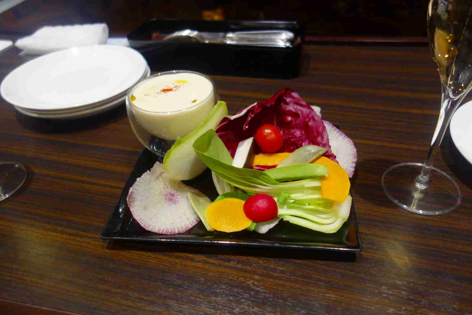 さらに、酸味と豆腐の風味を効かせたソースで楽しむ「バーニャカウダ」も配膳されて食事を開始します!