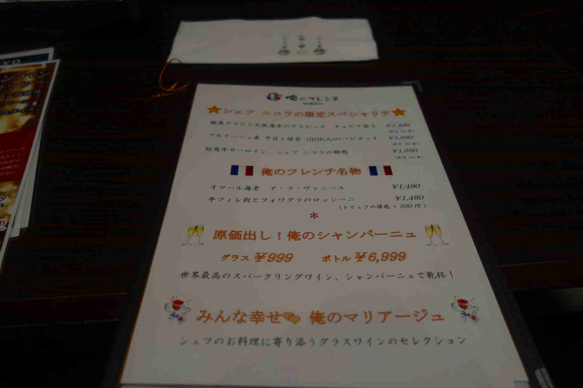 メニューはお店のスペシャリテとシャンパンの紹介からスタート!