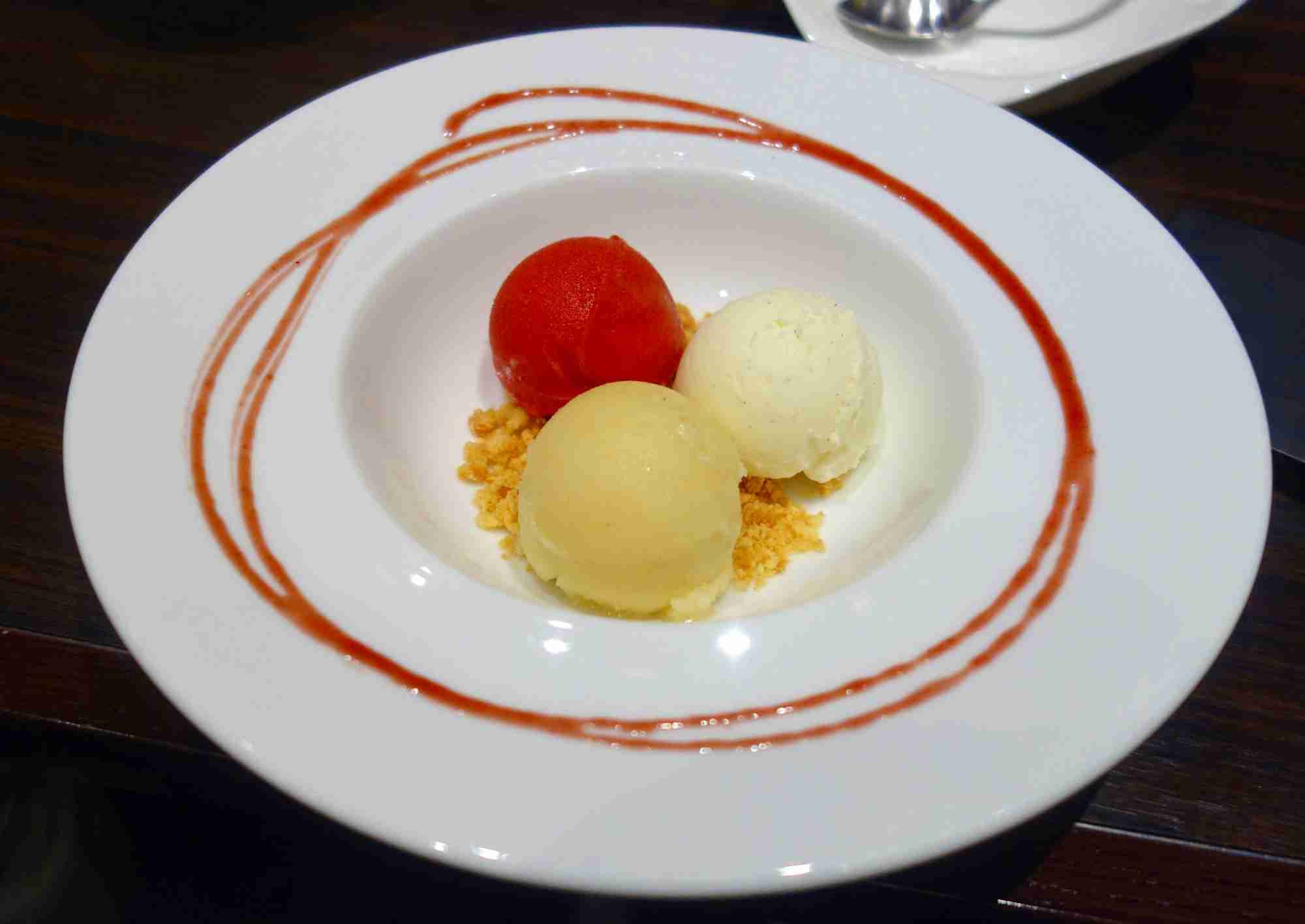 最後はいちご、洋梨、バニラ味のアイスクリームをぺろり!