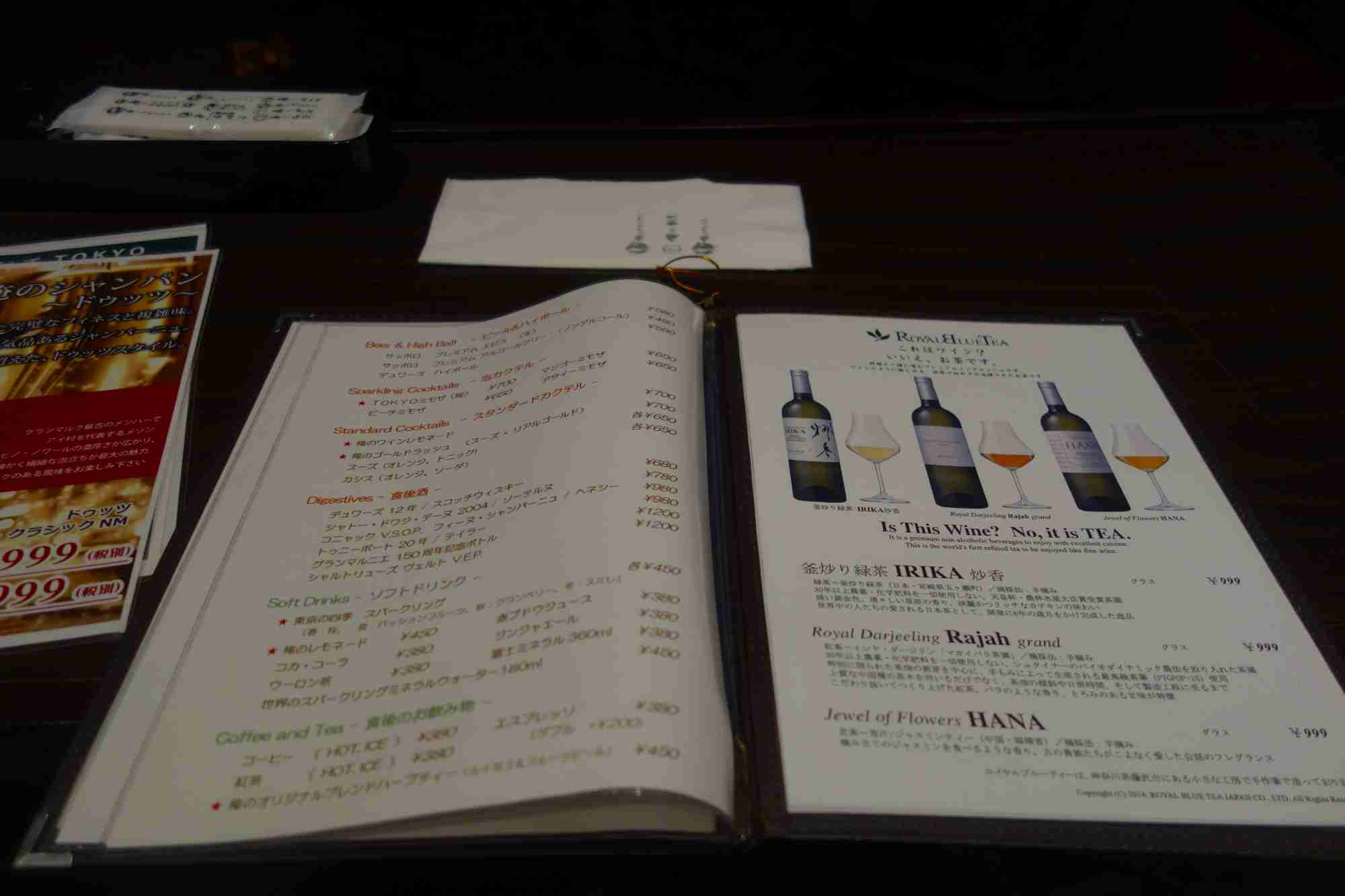 ハイボール、カクテル、食後酒、ソフトドリンク、変わり種のお茶。