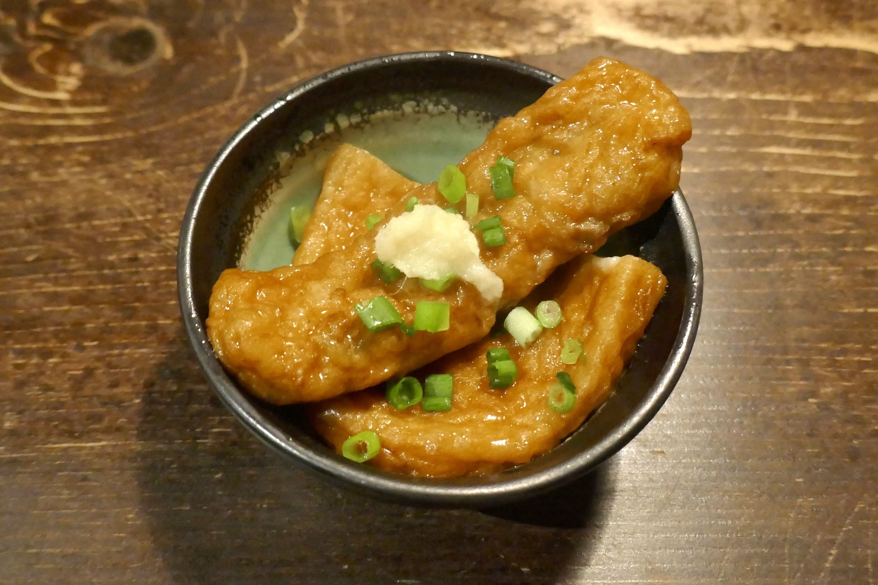お通しのおでんには優しい出汁の風味が染みている上に、刺激的な辛味が効いた生姜が乗ってお酒を誘うウマさ!