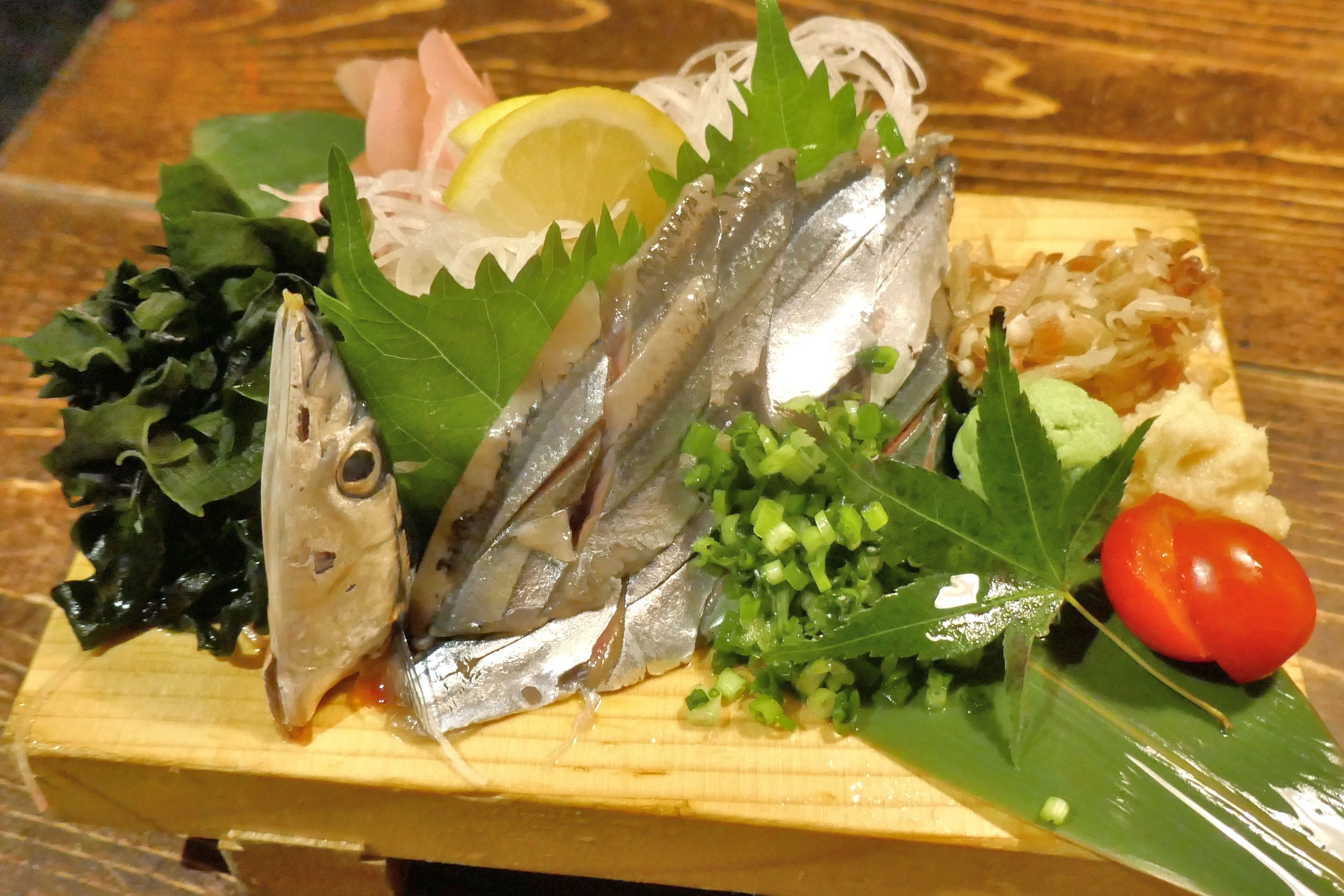 甘味と脂の旨味が効いた「秋秋刀魚刺し」780円でシメて食事終了!北千住に詳しい人の導きも相まって美味しい夜飯が楽しめました!