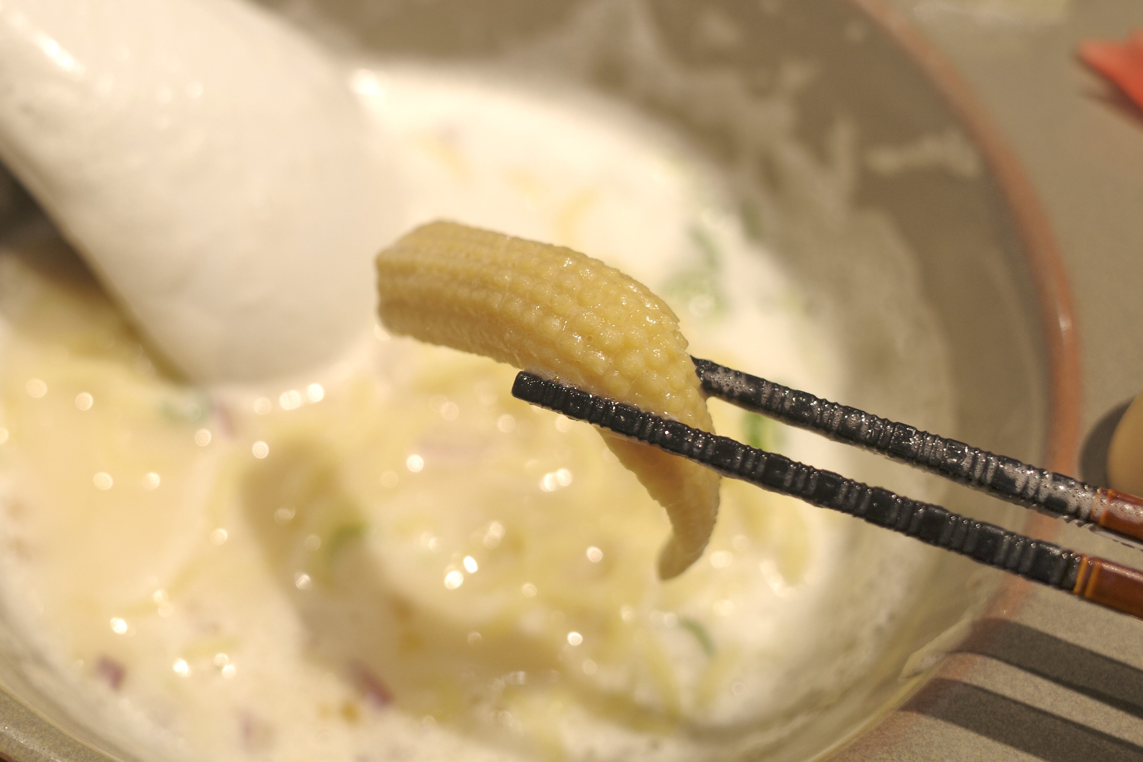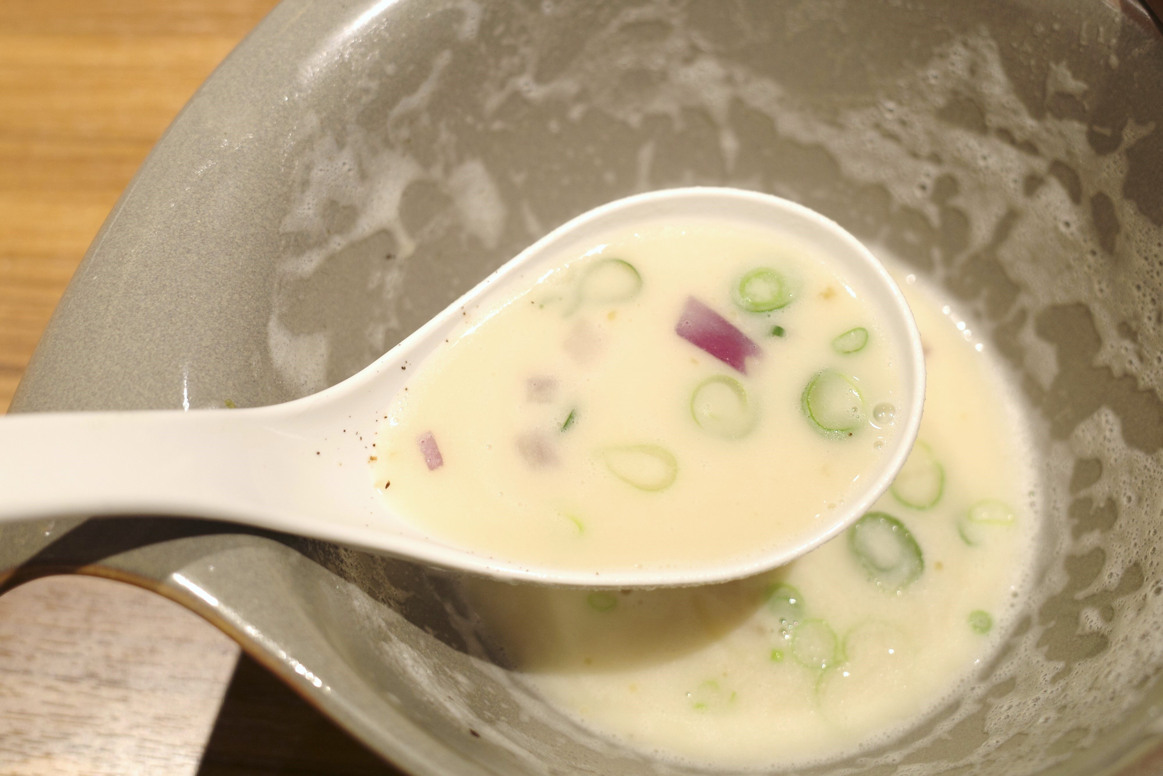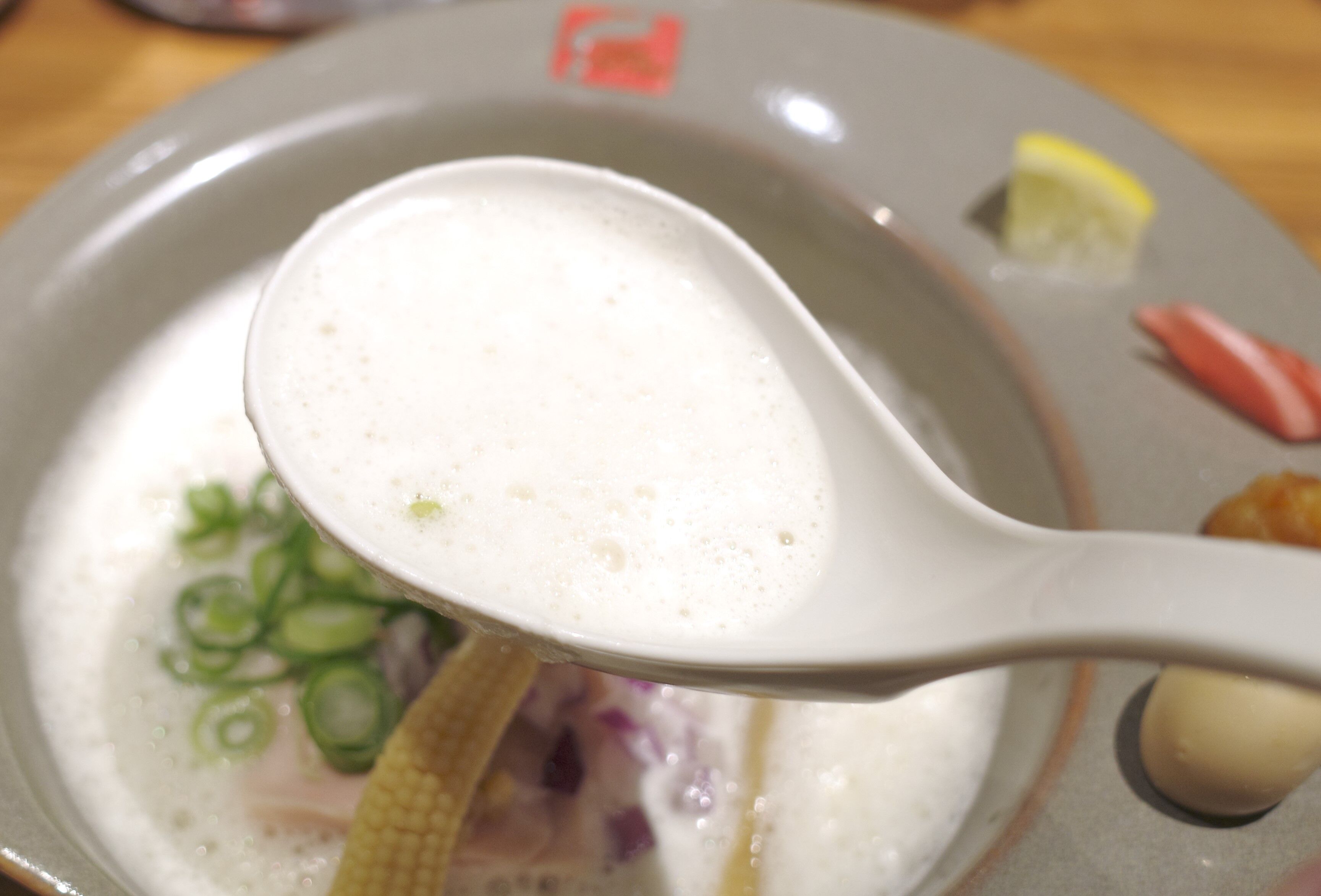 まずはスープから味わってみると、泡立てたことで舌触りが滑らかな上に、力強いコクとまろやかさ、程よい塩気がこだましてウマー!