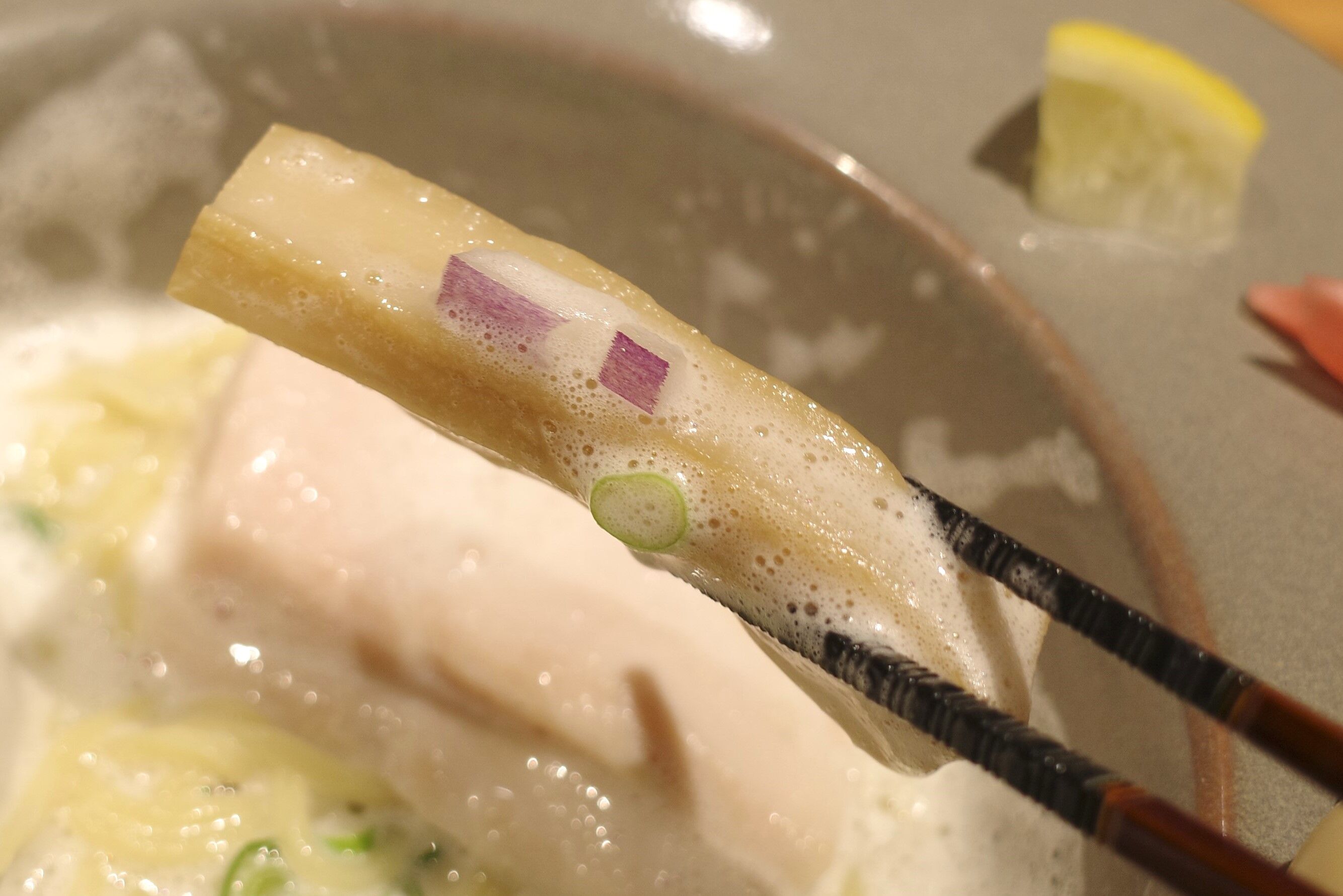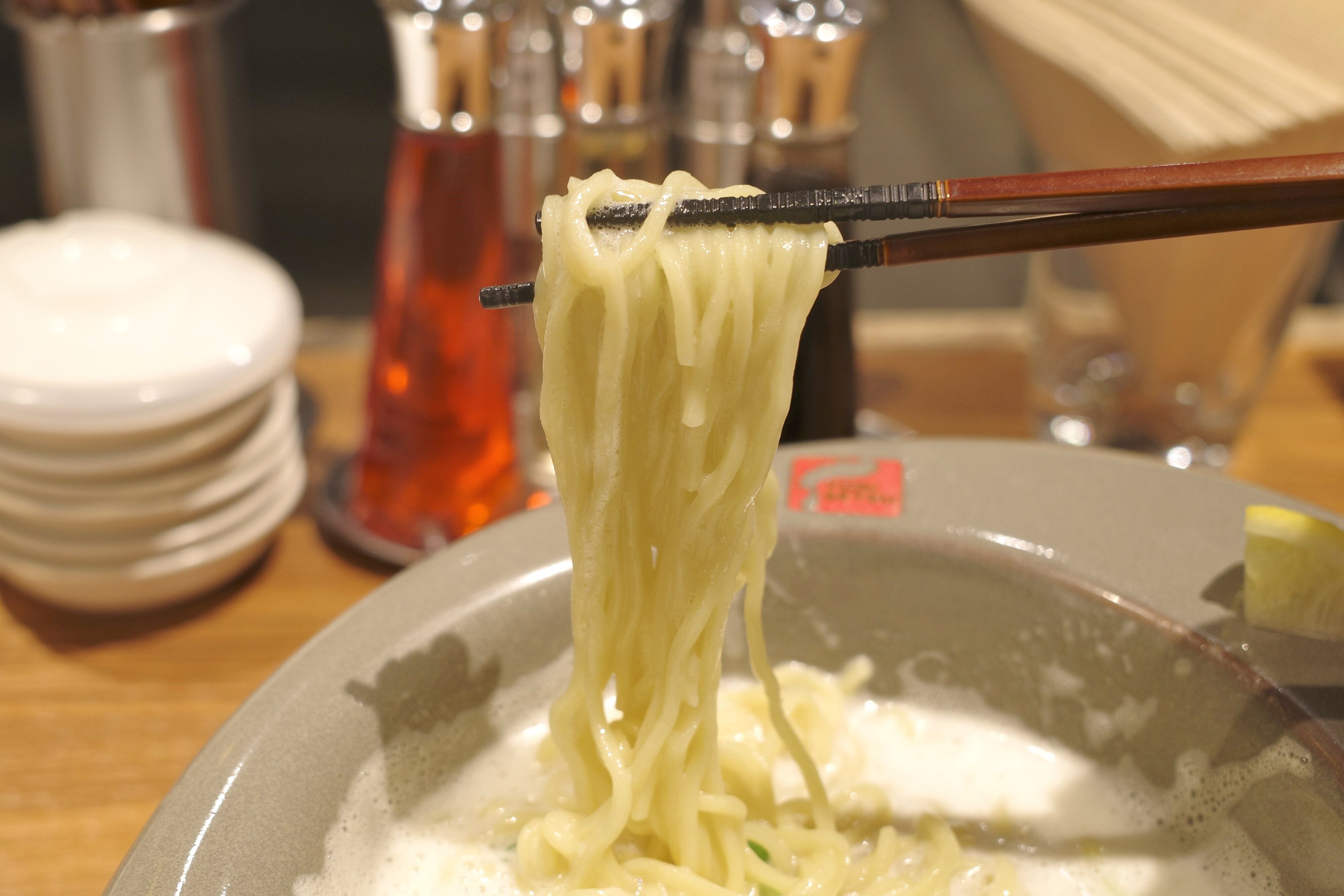 麺はコシが強く、エスプーマ仕立てのスープも馴染んで大変美味!