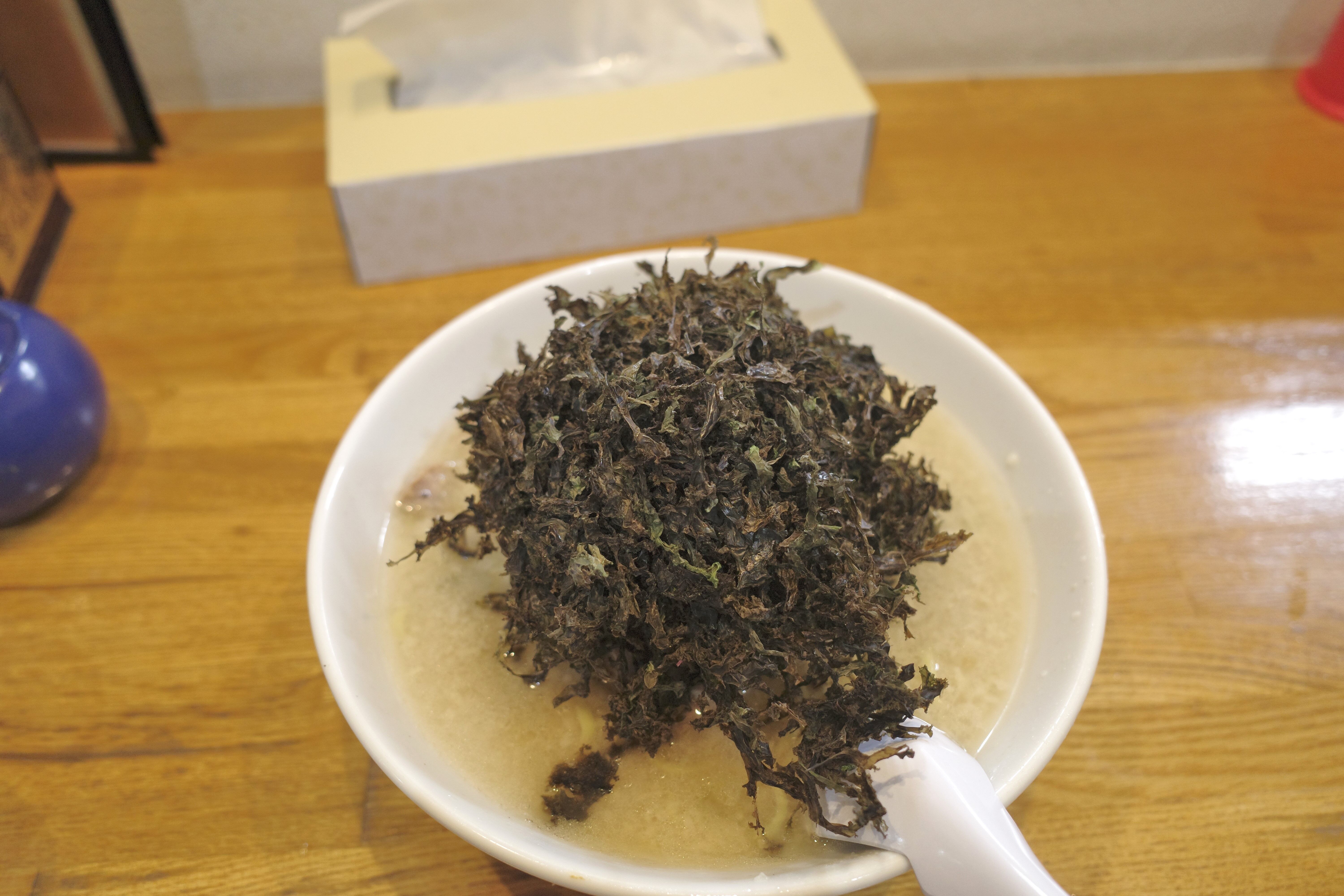 たまに行くならこんな店 鹿島セントラルホテル近くの「らーめん 頑固 一徹堂」で、大量の海苔と豚骨スープのコンビネーションでスルッと食が進む「北海のりラーメン」を食す
