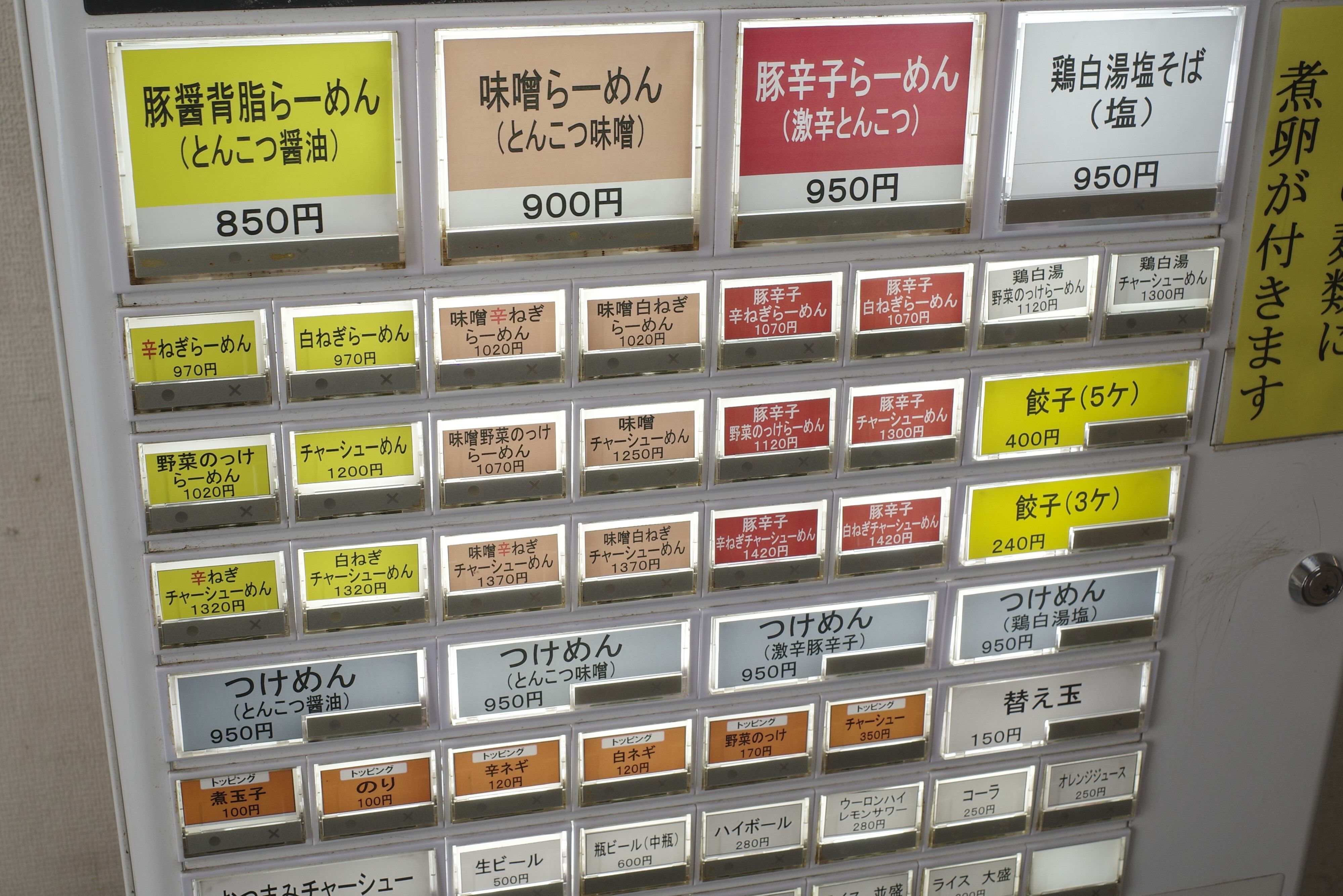 メニュー構成は柏店と同様なので悩む心配0。この日は「豚骨背脂らーめん(とんこつ醤油)」850円をオーダー。