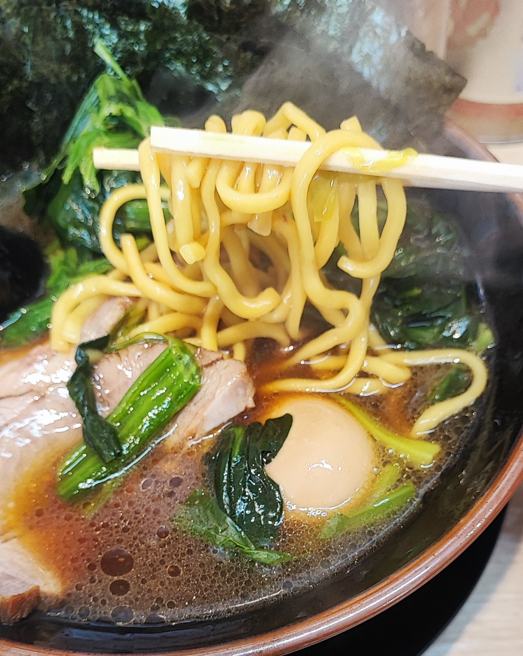 麺は腰強めな中太麺で、長さ短めなことによりスルスルと食が進みやすいのが最高!