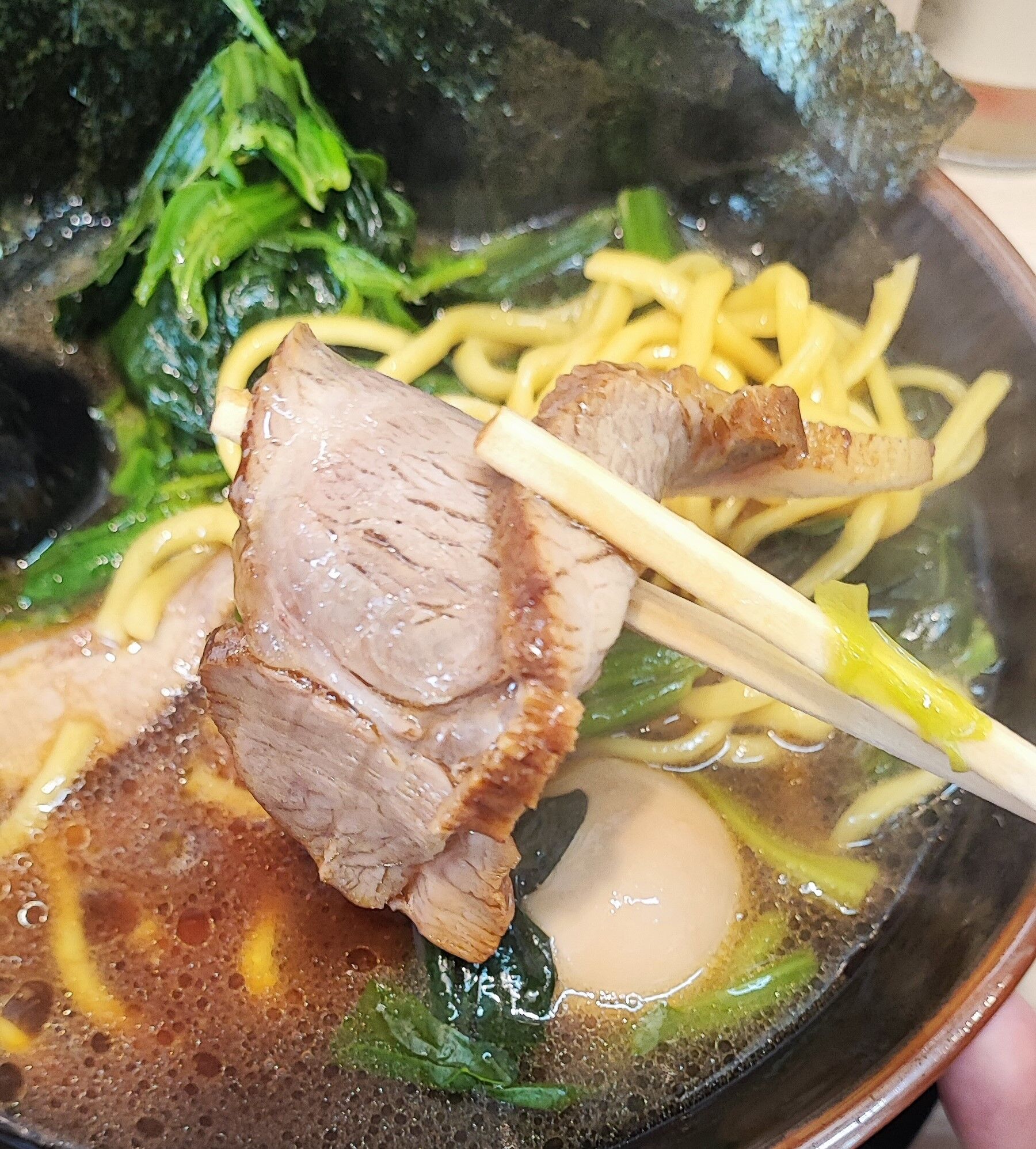 味玉は下味は薄めながらも、半熟の黄身の舌触りと風味が渾然一体となってメチャウマ!