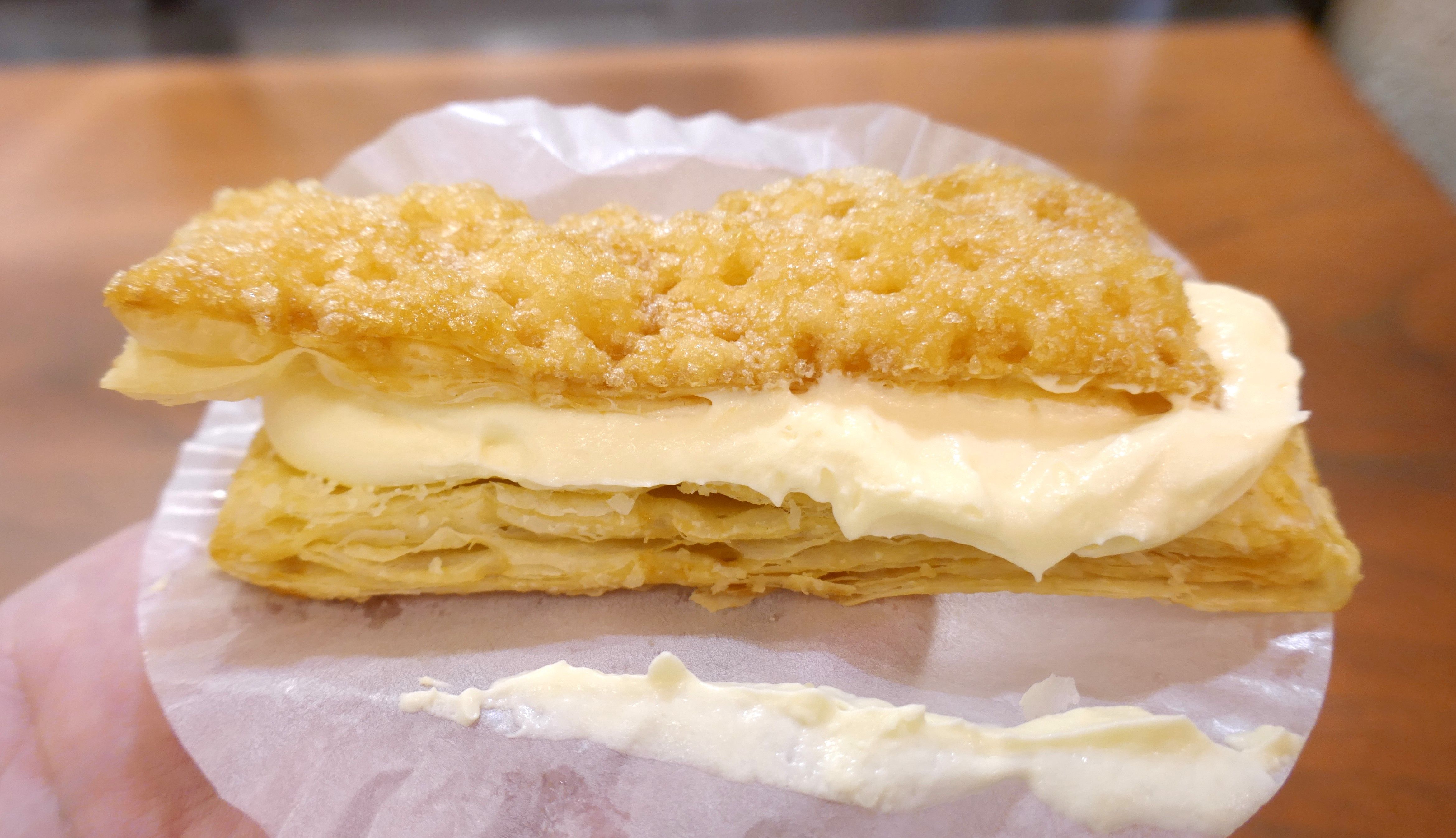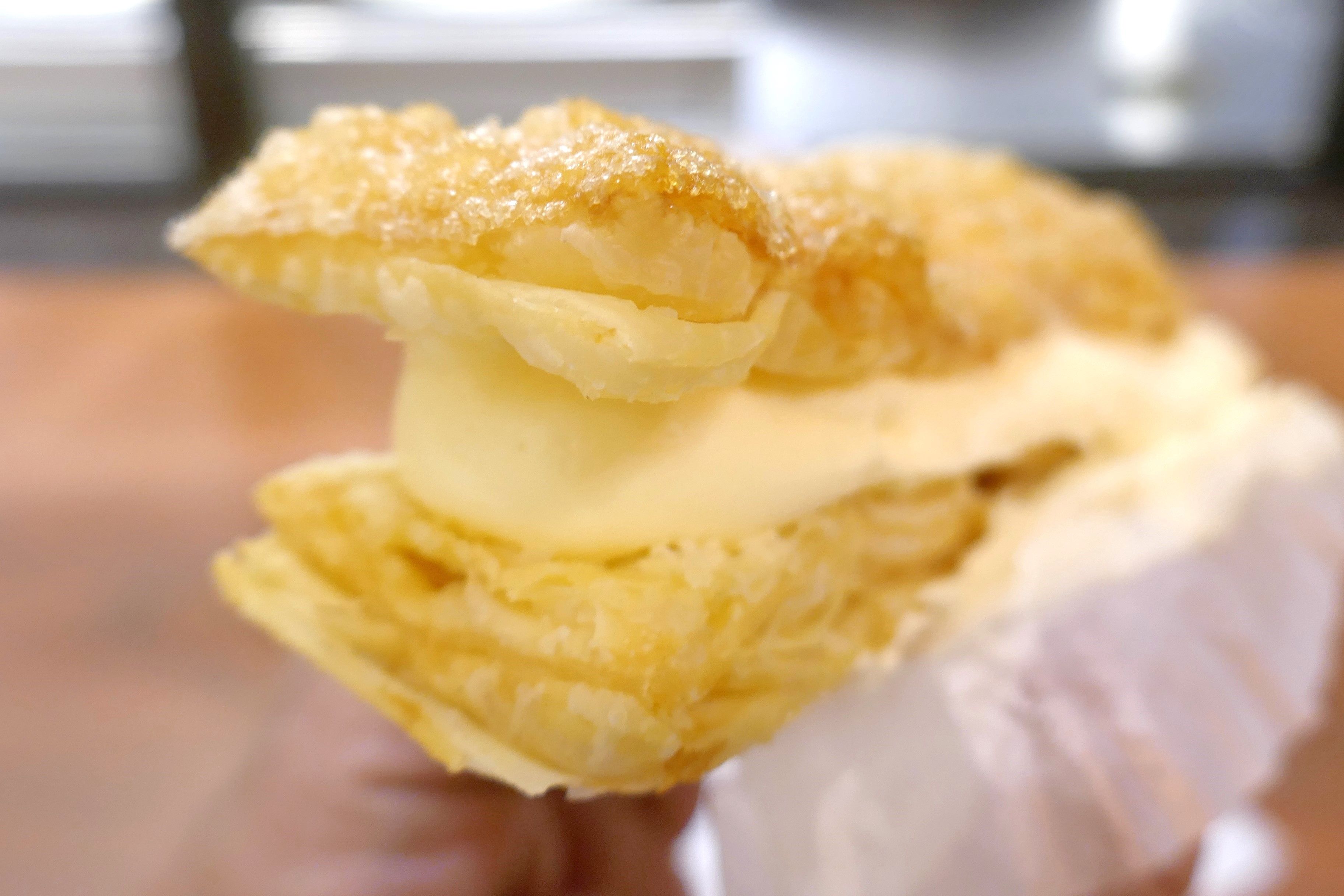 「サクパイ」は、パイ生地の合間にたっぷりカスタードクリームを挟んだミルフィーユ的な一品。