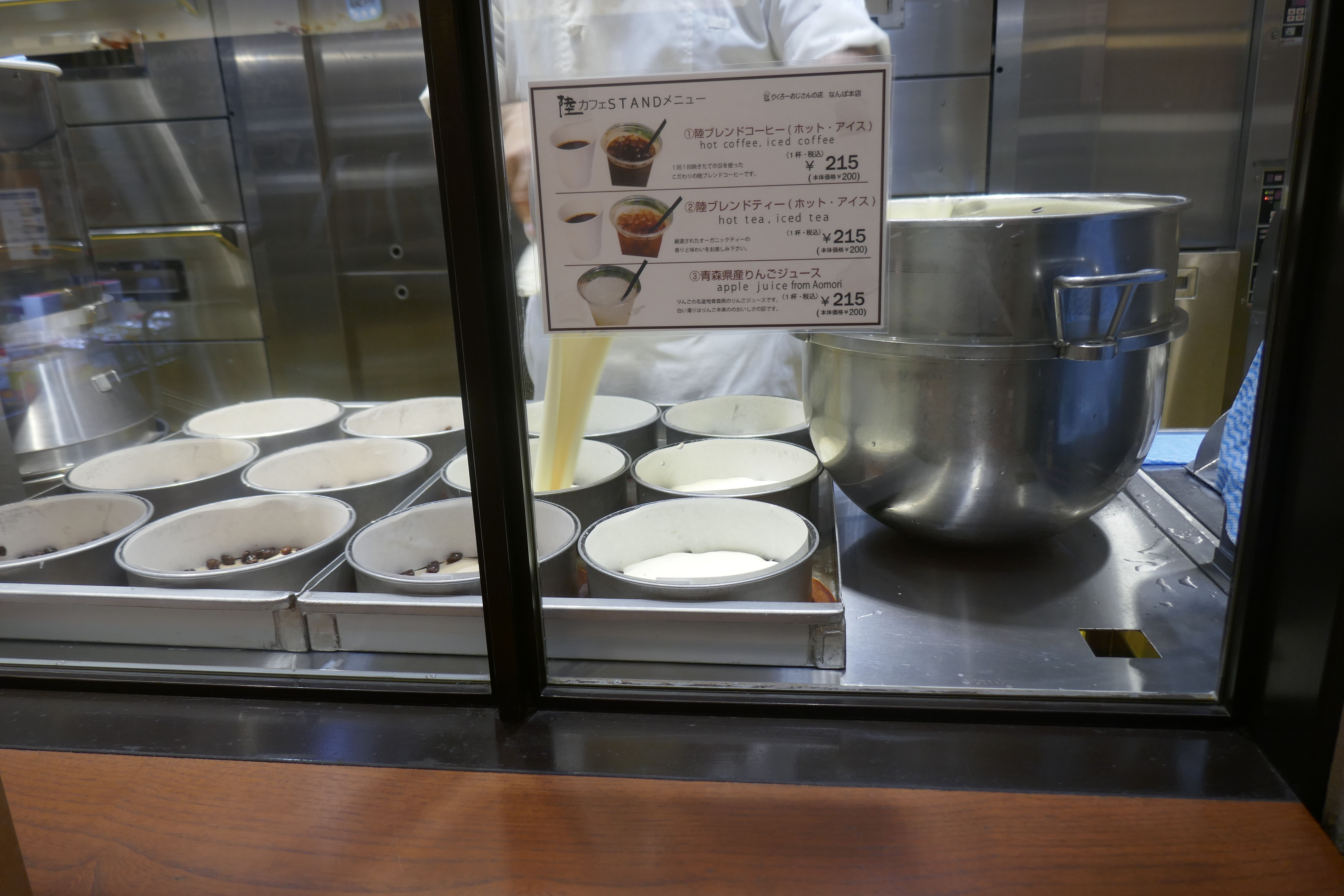 奥の厨房では黙々と人気のチーズケーキが作られている光景が楽しめます!