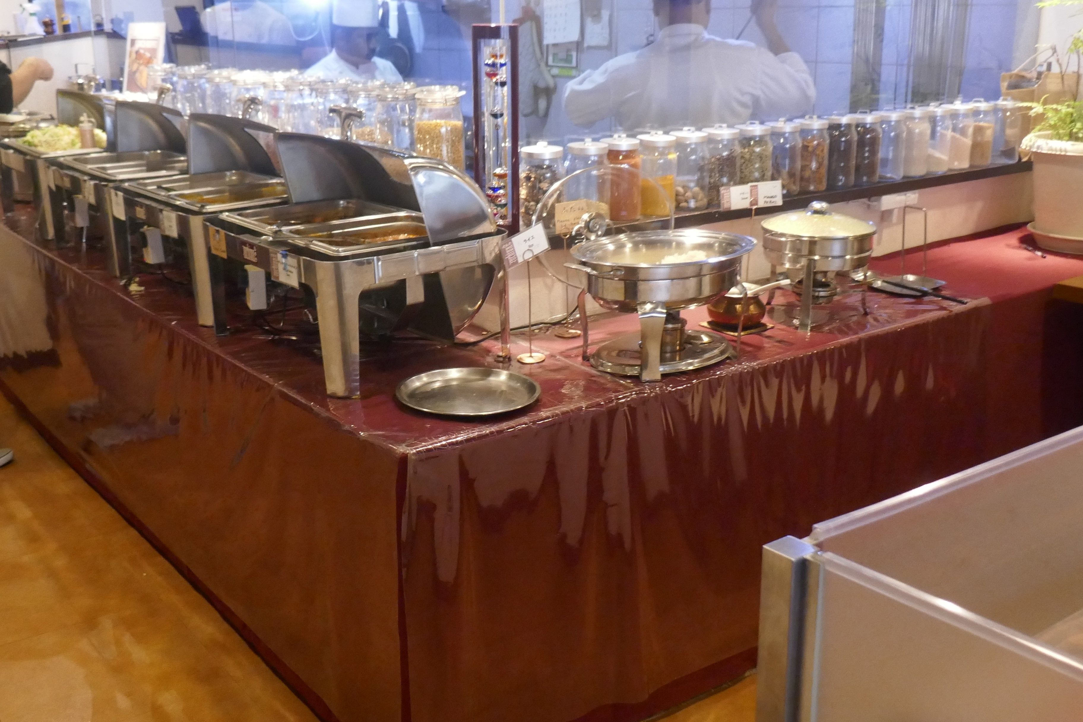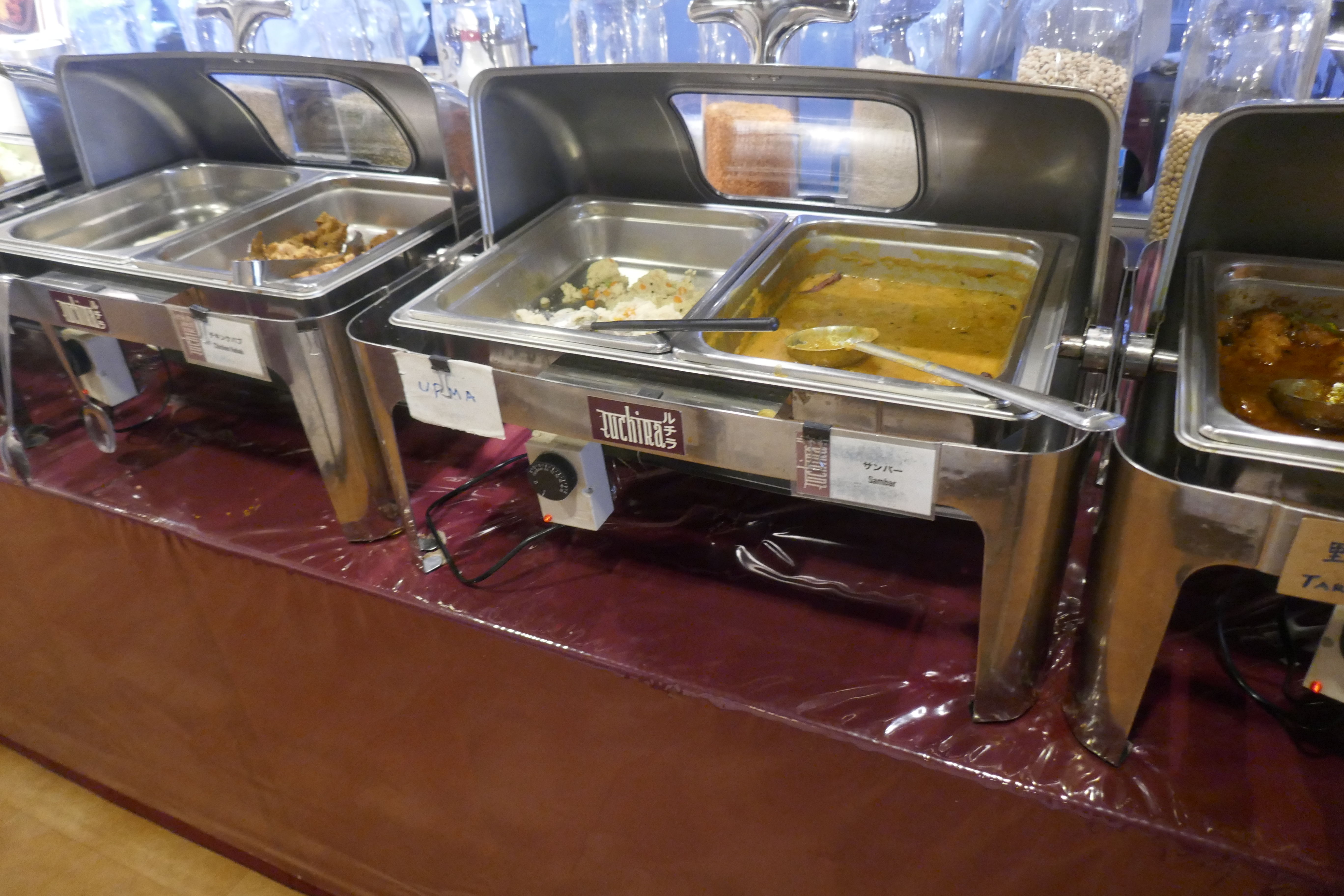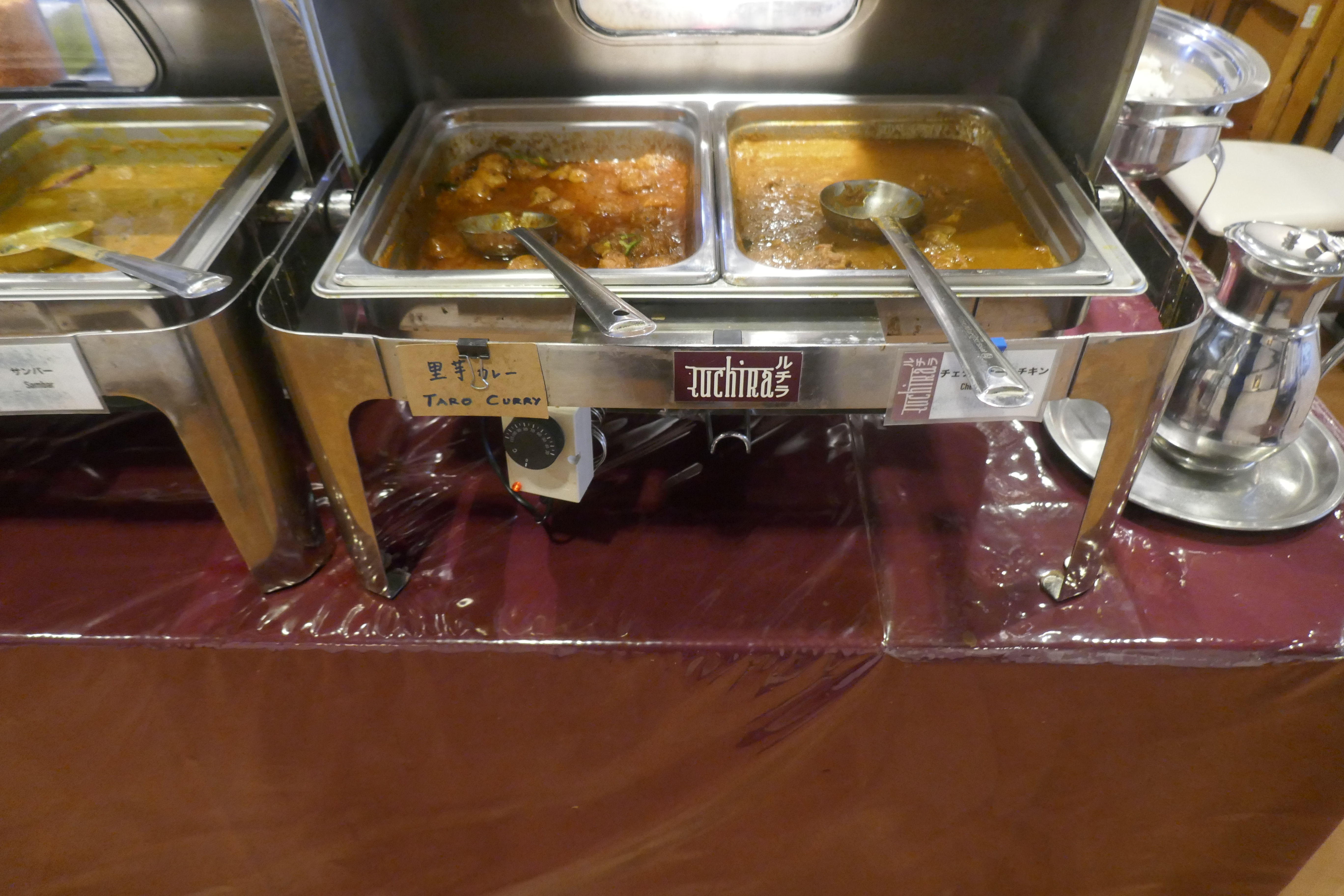 ビュッフェコーナーにはチェダーチーズチキンカレー、里芋カレー
