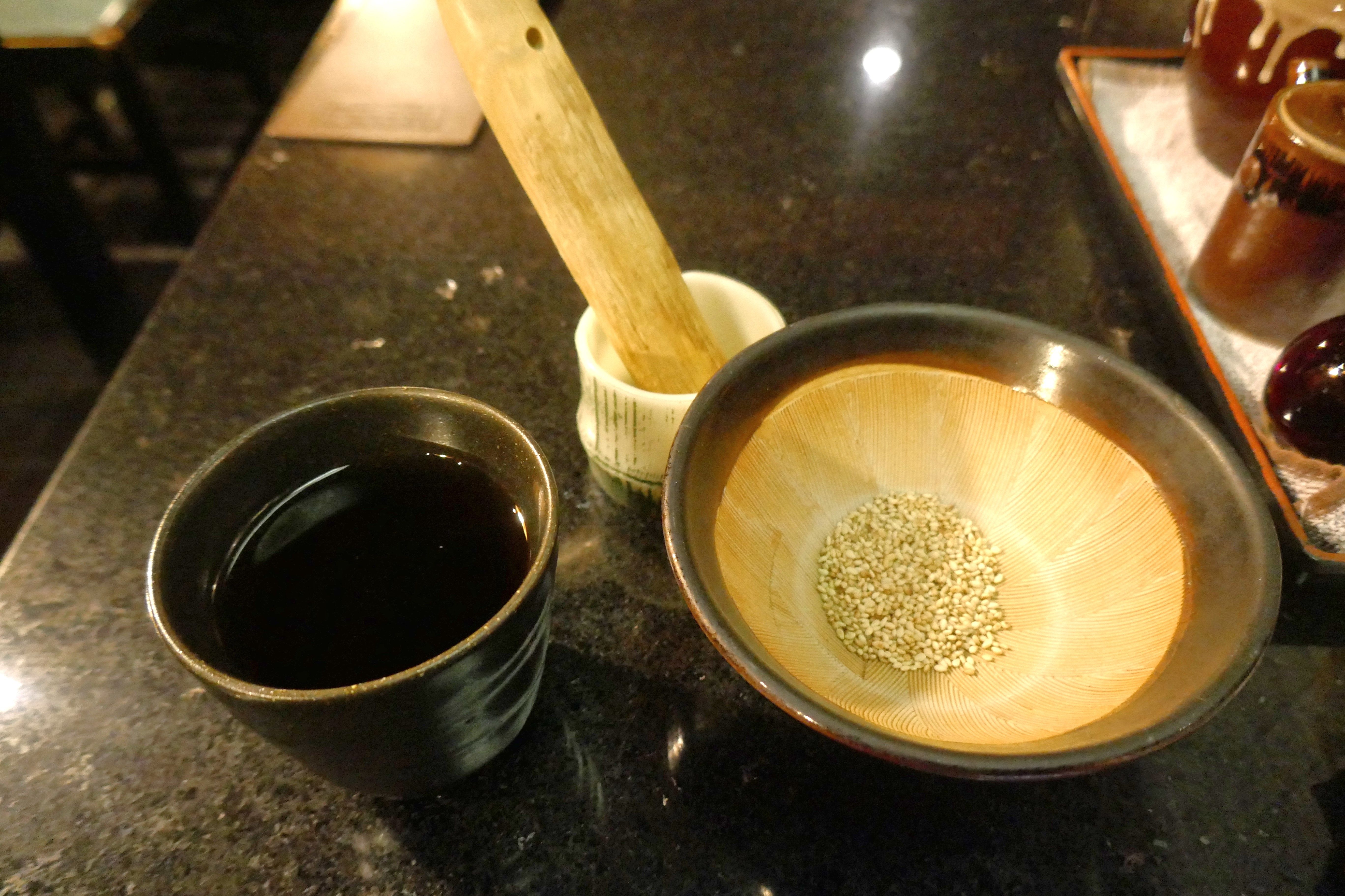 お茶とともに、ごまが入ったすり鉢が登場!