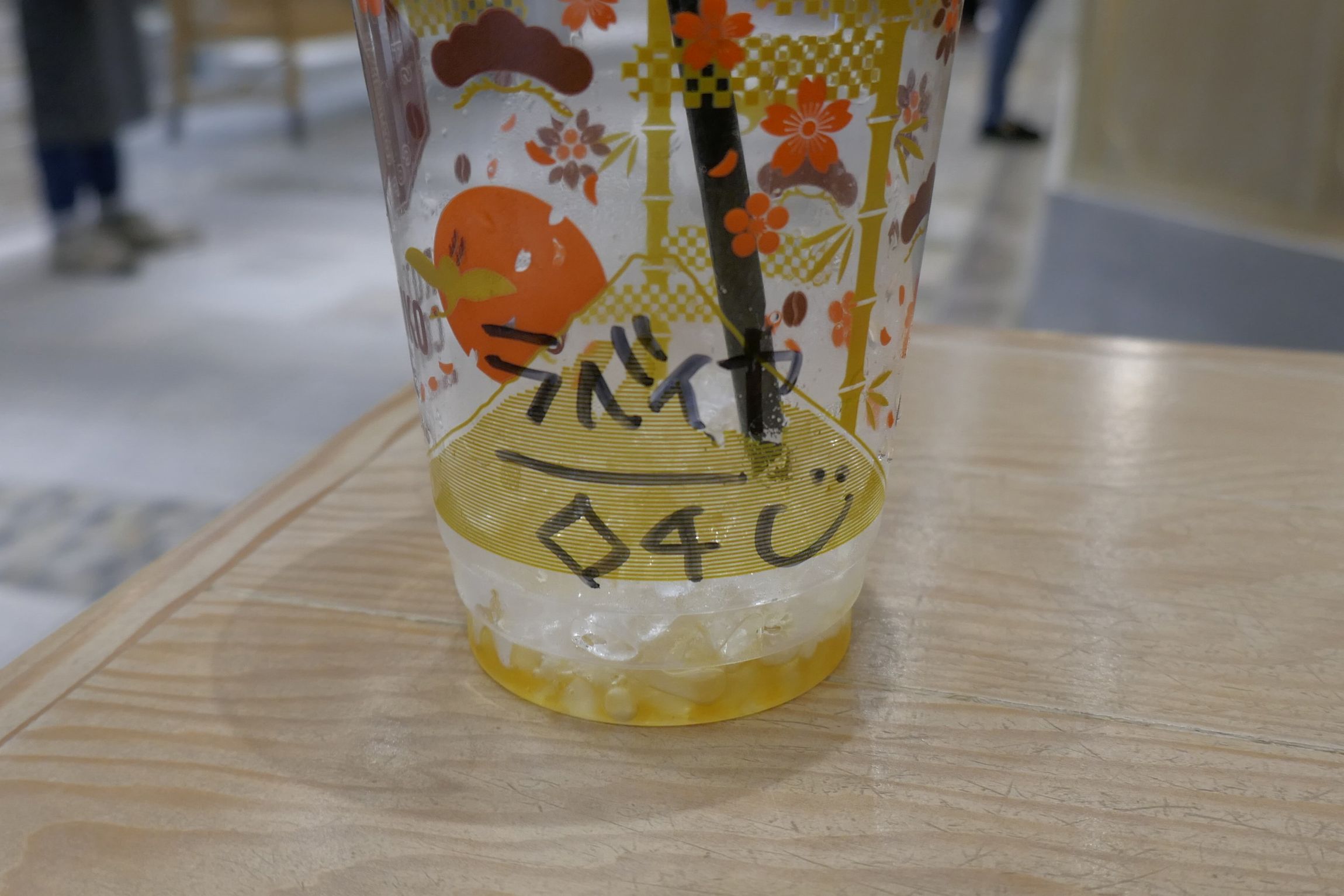 容器の底に何かマジックで書いてあるようですが、コーヒーが入っている状態では内容が確認できず