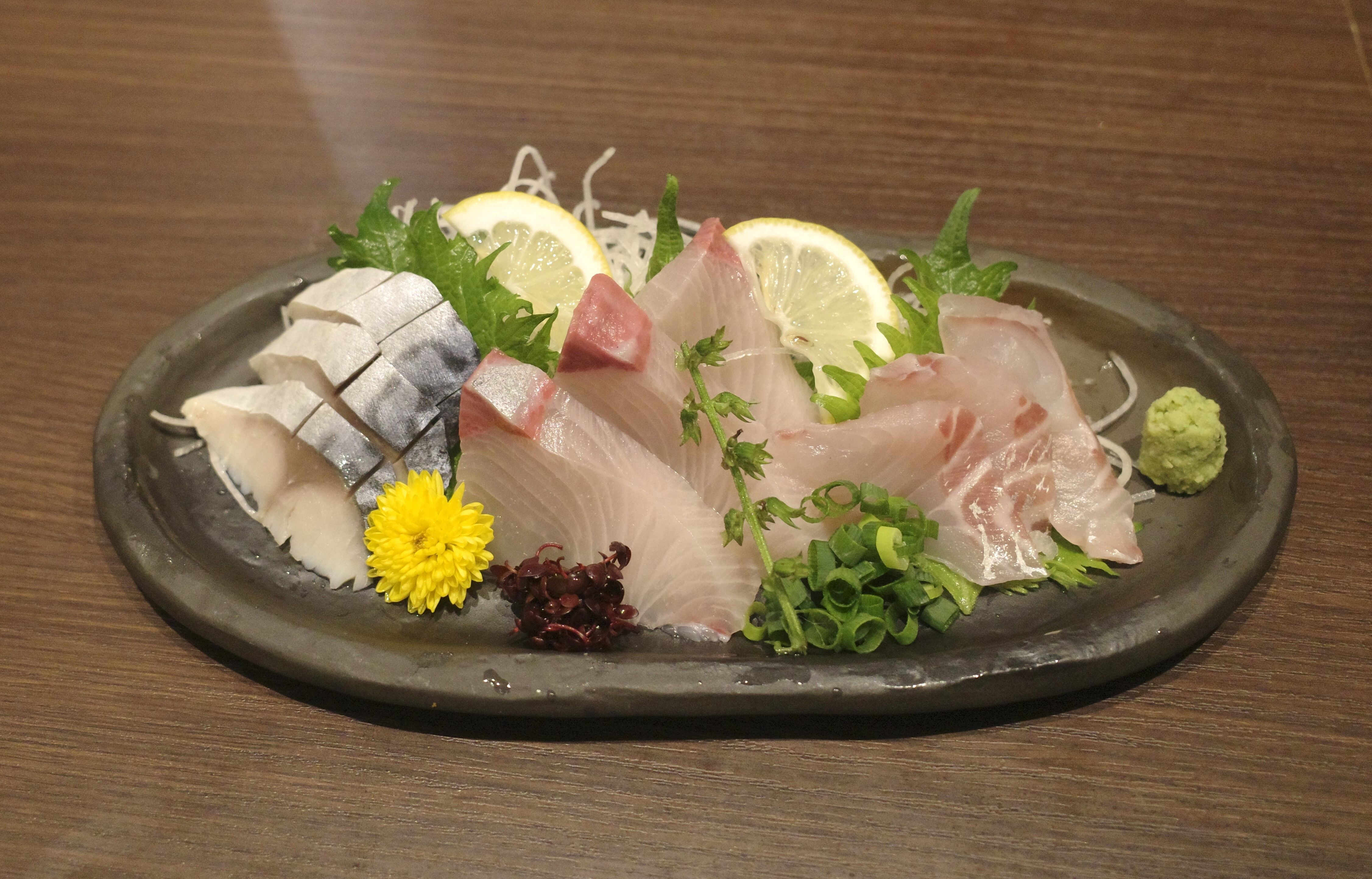 直後に「鮮魚三種盛り合わせ(しめ鯖、ぶり、たい)」1738円が登場!