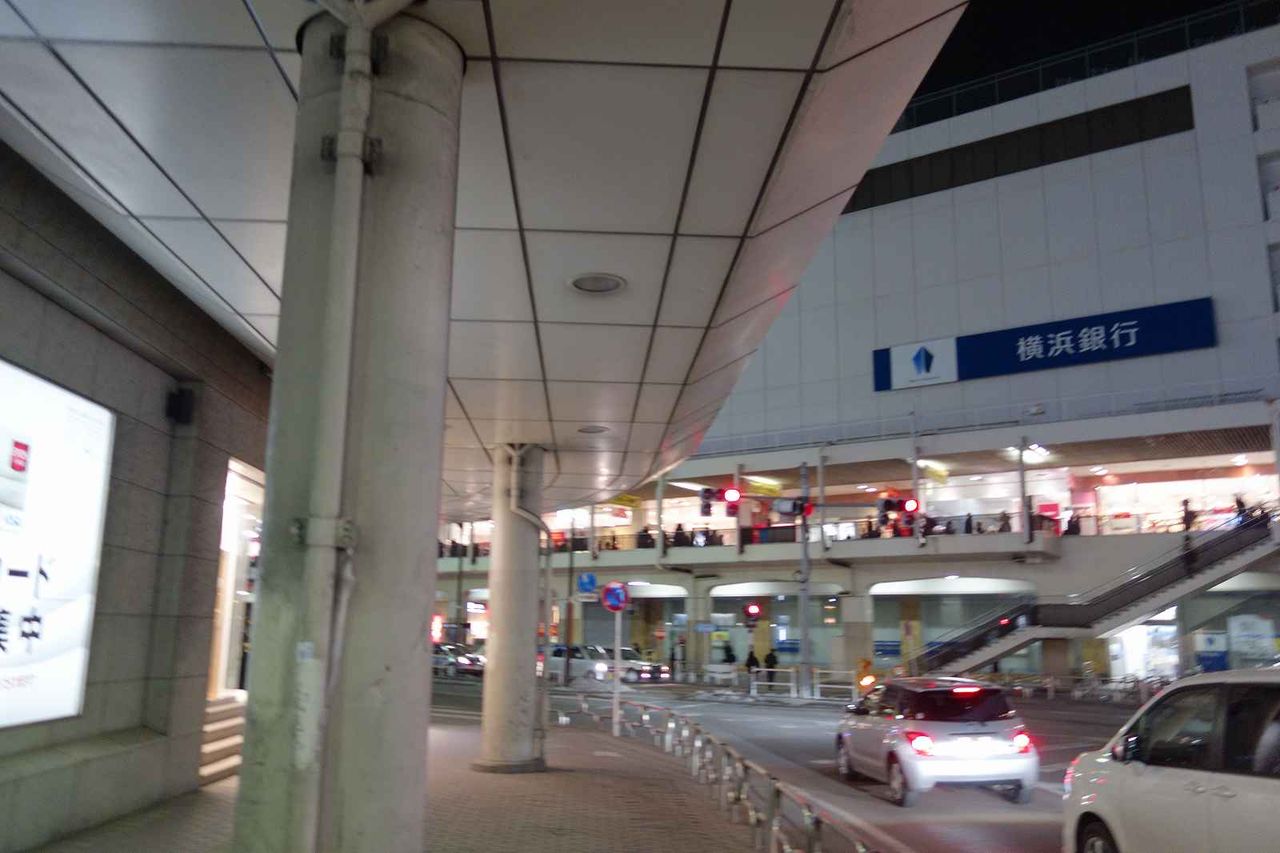 まずはJR線の駅舎に沿うように進み、目の前には横浜銀行