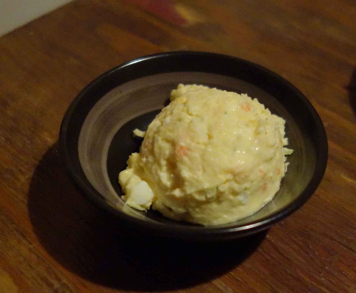 まずはお通しのアイスクリームの様に丸くなったポテサラをぺろ食いし
