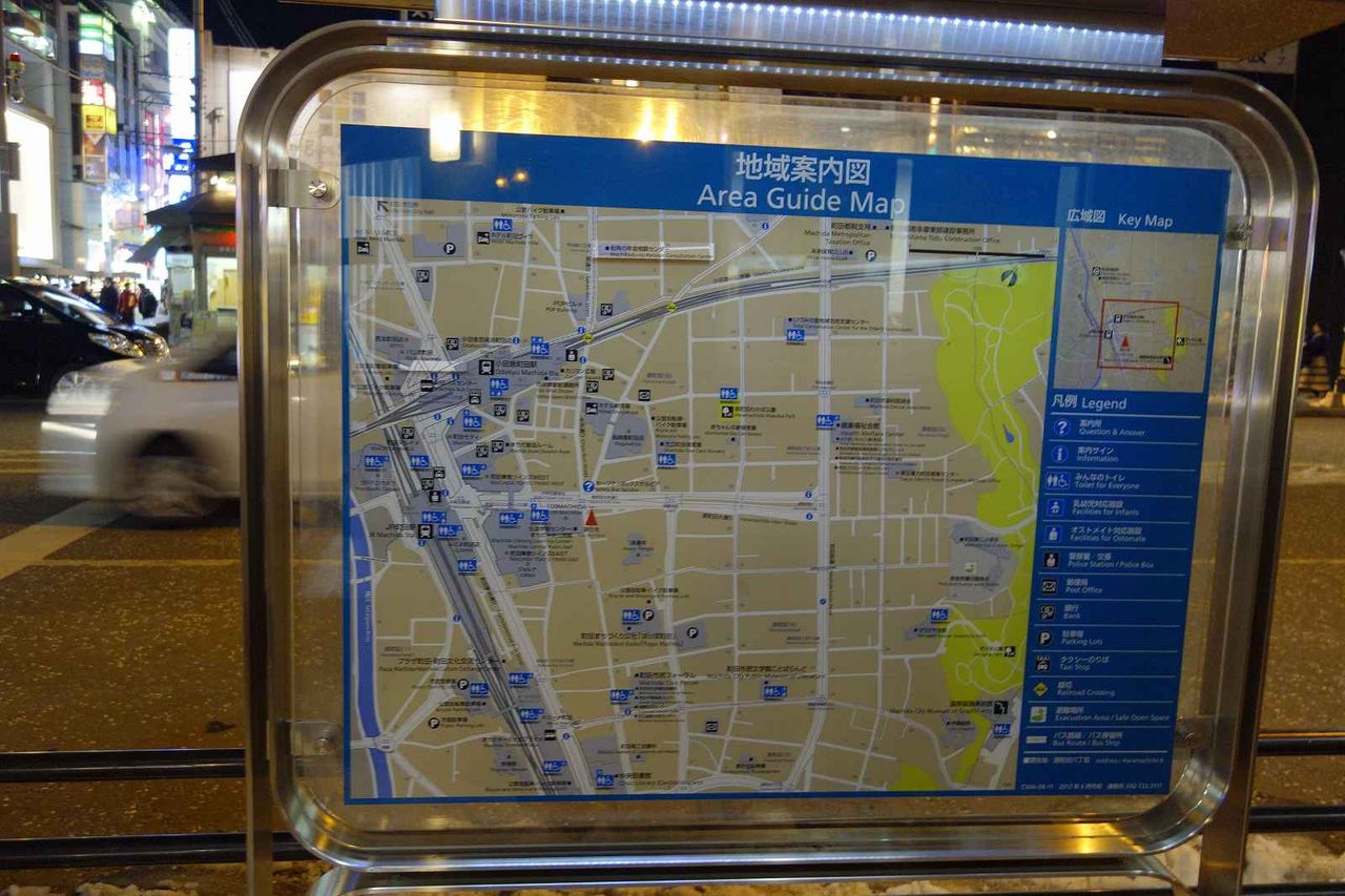 近くにあった地域案内図を見て、現在地とお店の位置を確認後