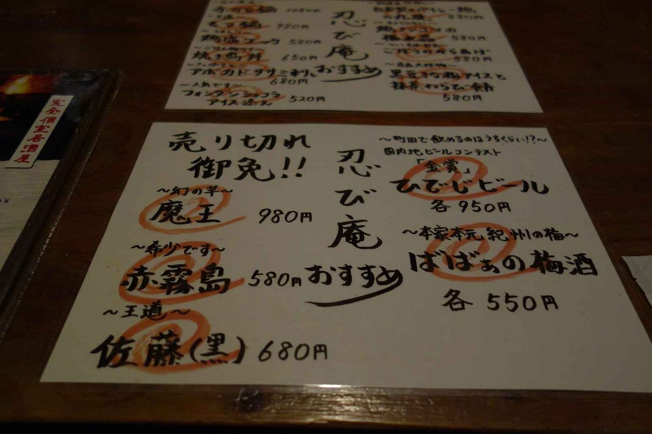 お酒はいい感じ、料理はまあまあな、忍びねえ隠れ家的作りの「忍び庵町田店」へ行ってきました。