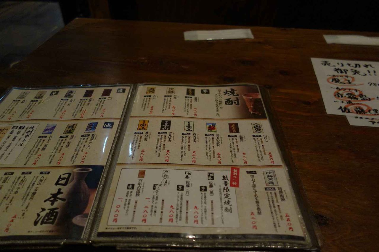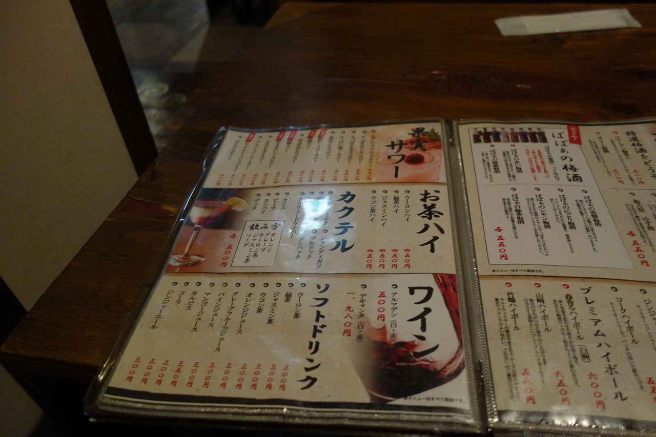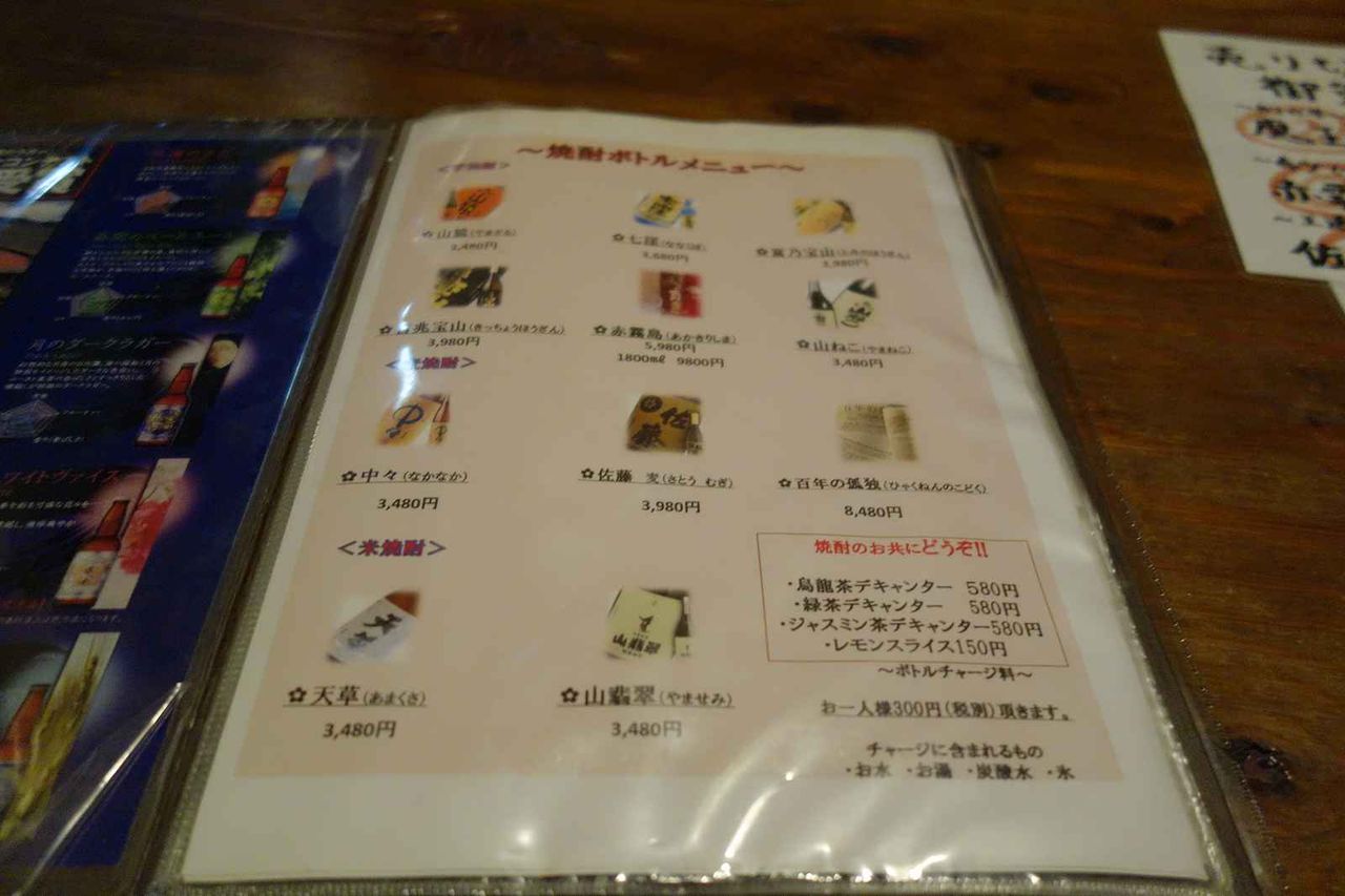 席の上にメニュー表が置かれていたので早速見てみると