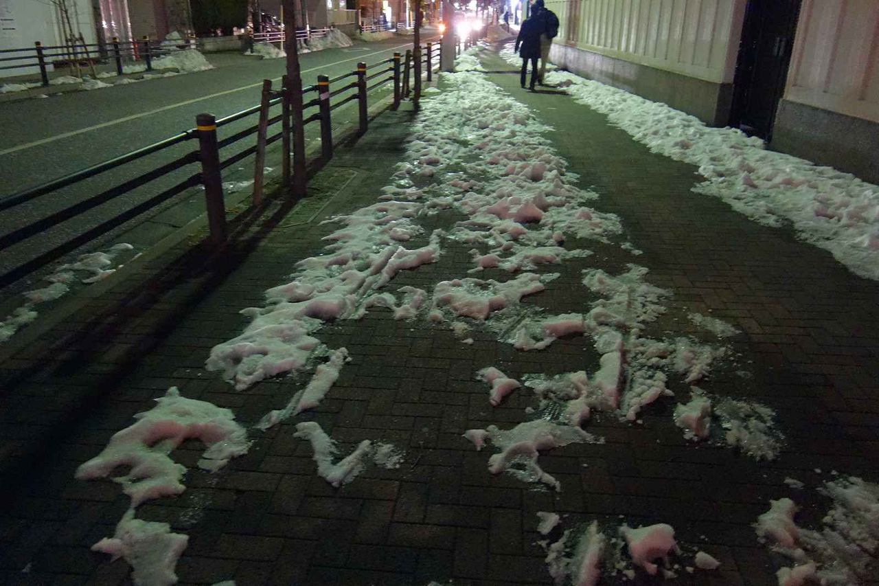 歩道には沢山雪が残っており、足元に気をつけながら進んでいき
