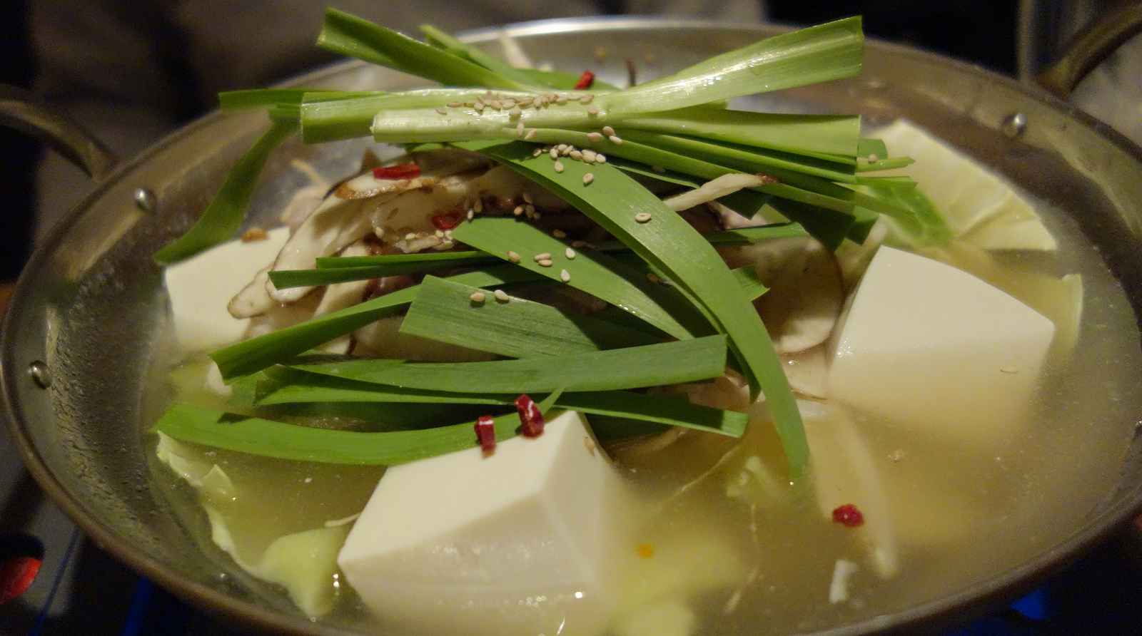 程なくして出来上がった塩もつ鍋を頂いてみると、スープあっさりでもつは柔らか