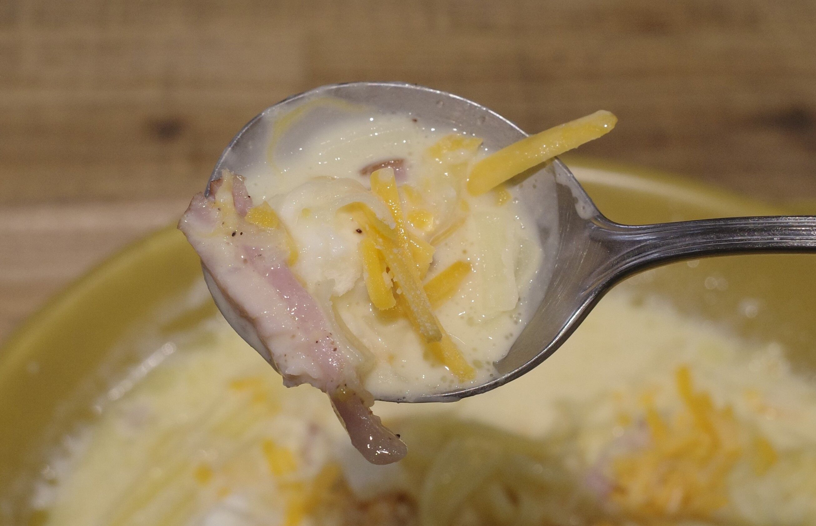 燻した風味豊かなベーコン、塩気強めなチーズをまとわせることでウマさマシマシに!