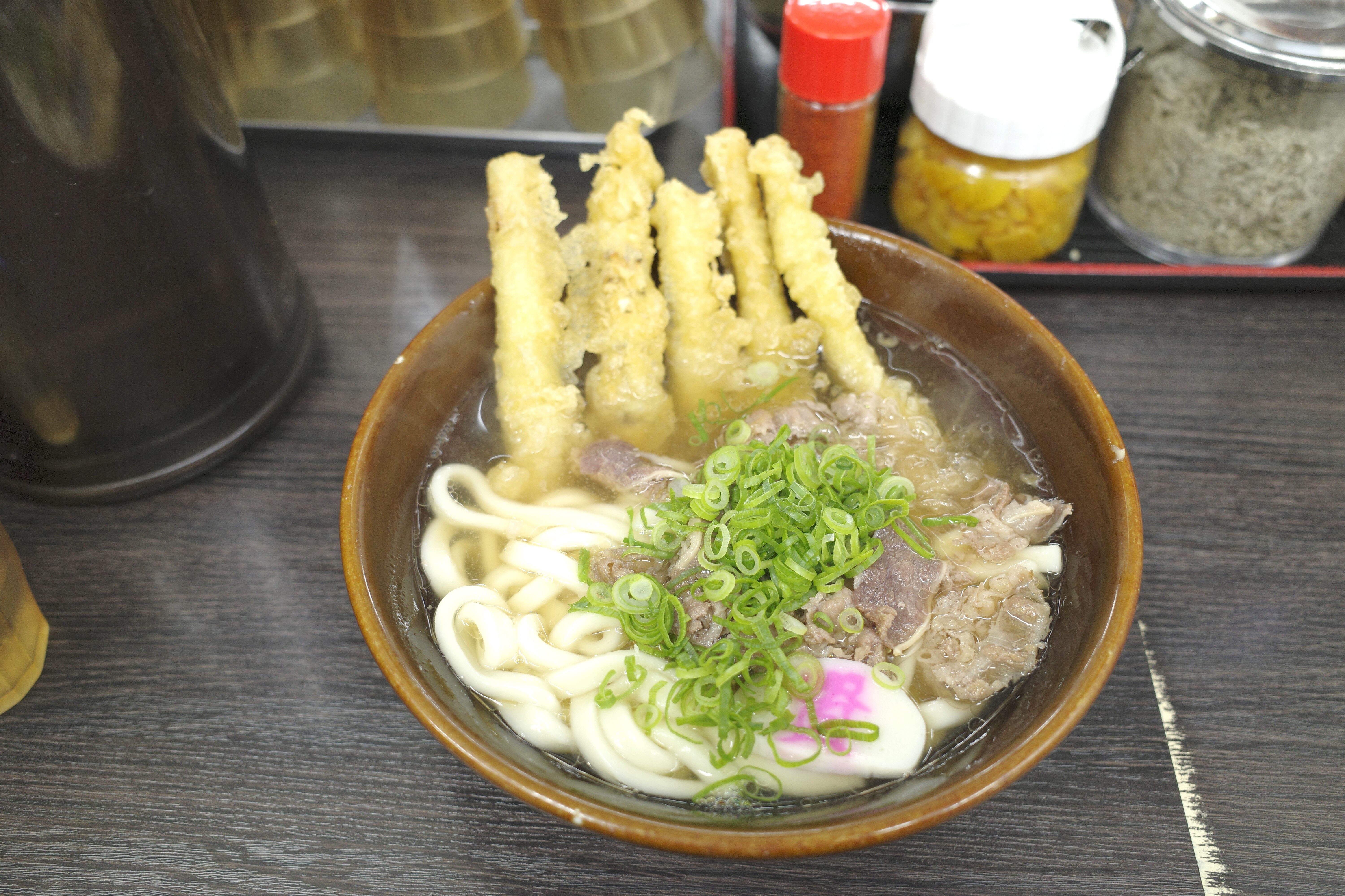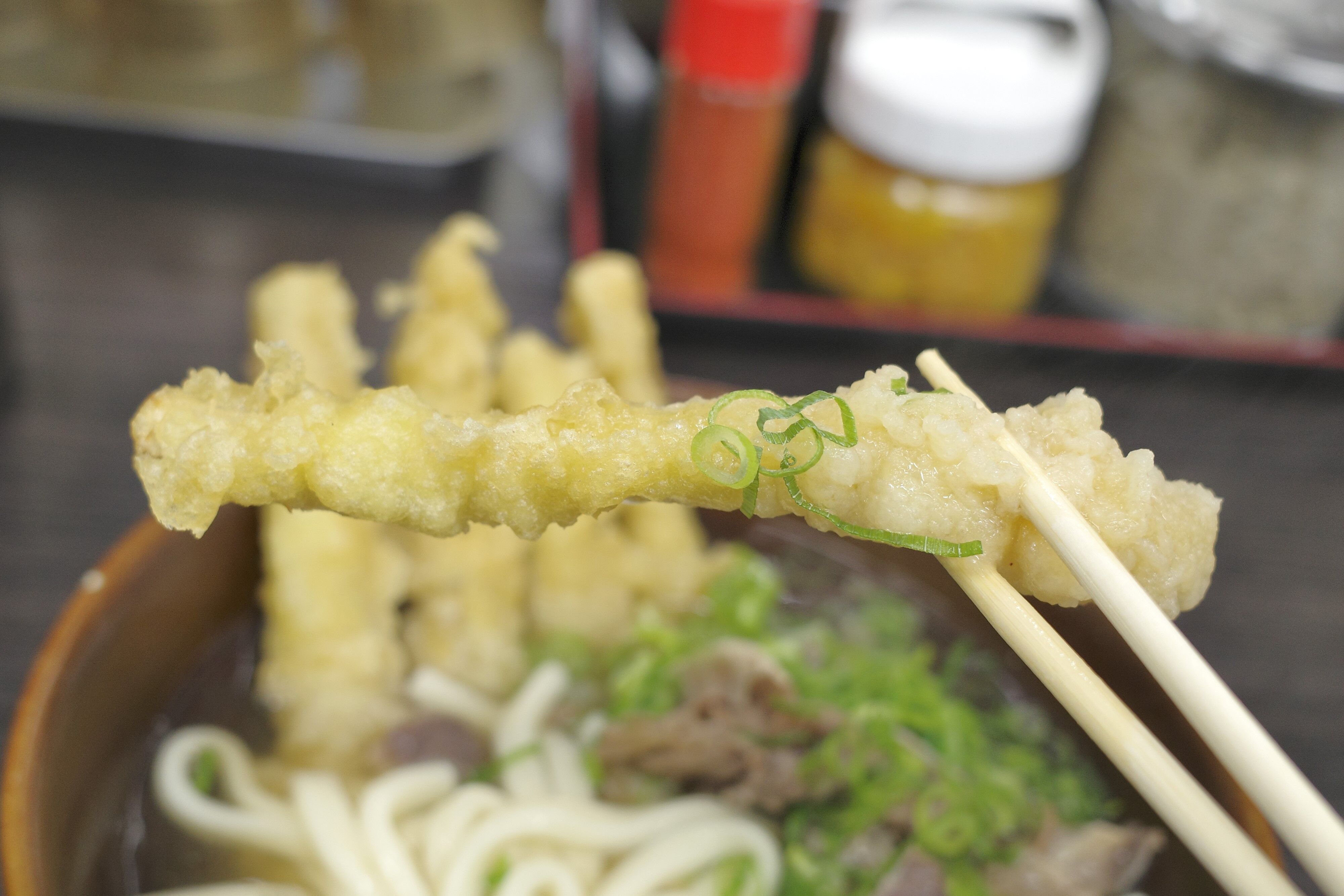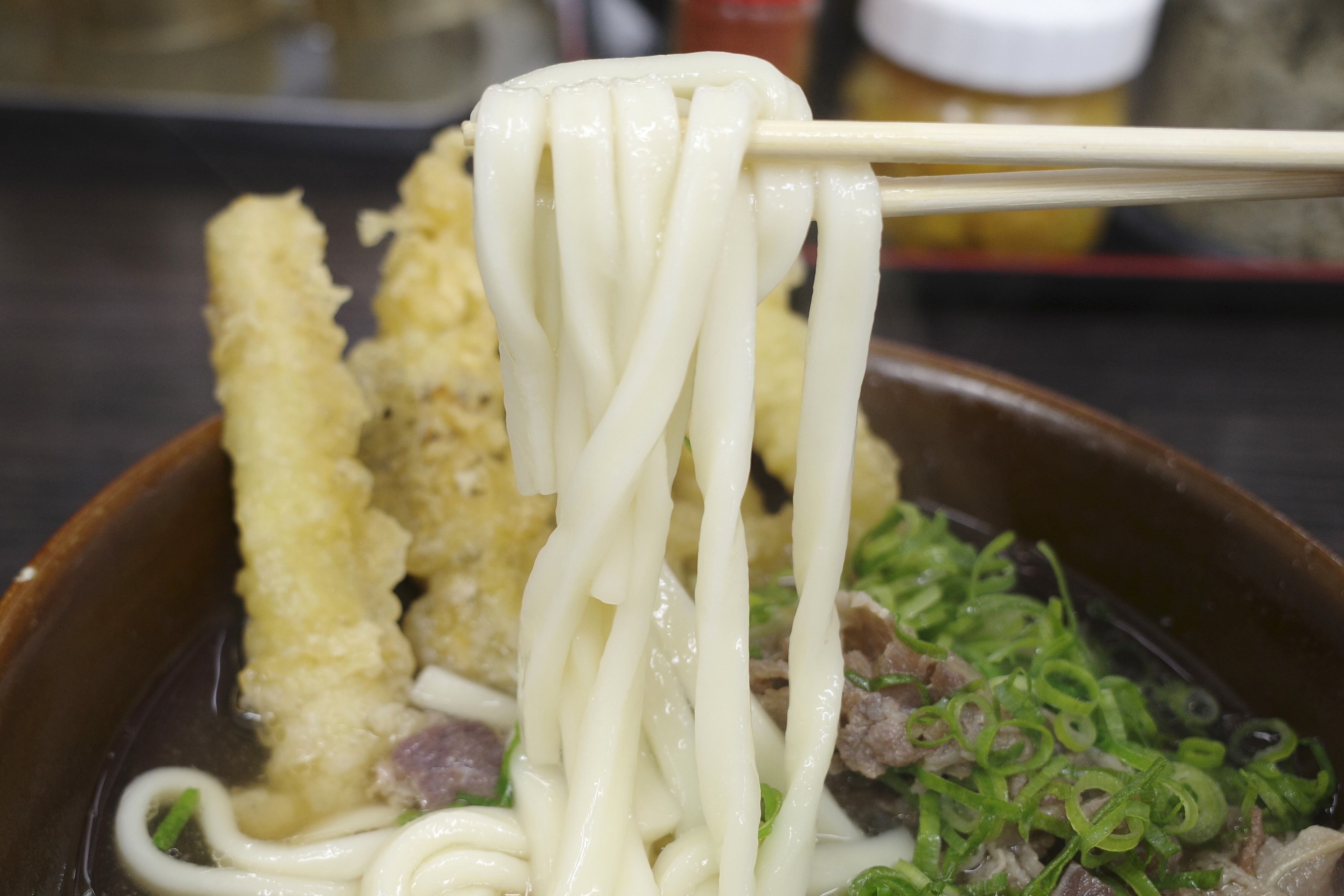 たまに行くならこんな店 小倉駅近くにある「資さんうどん 魚町店」で、柔らかなうどん、香ばしいごぼ天、甘辛く煮た牛肉に激強な旨味の出汁が馴染む「肉ごぼ天」を食す!