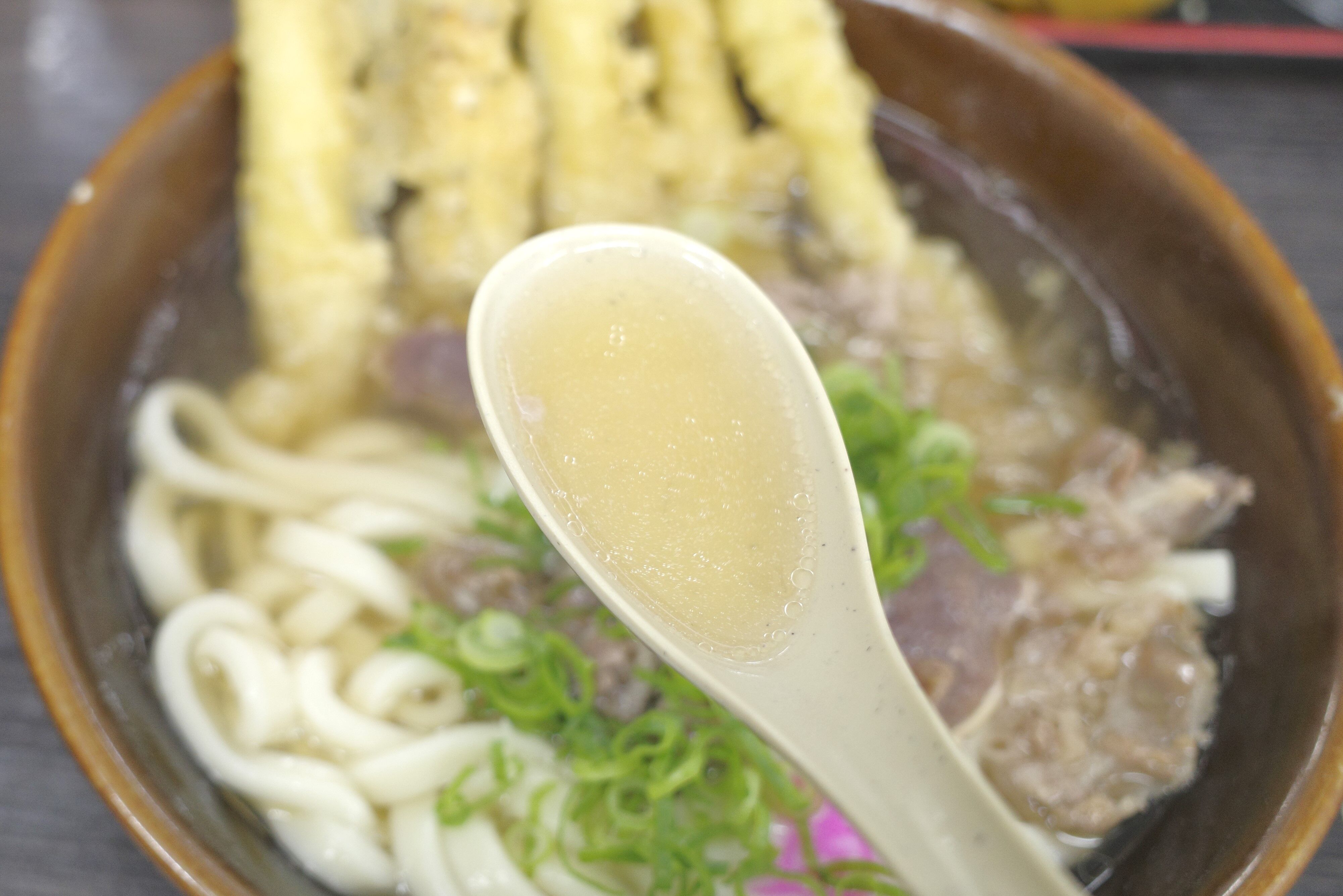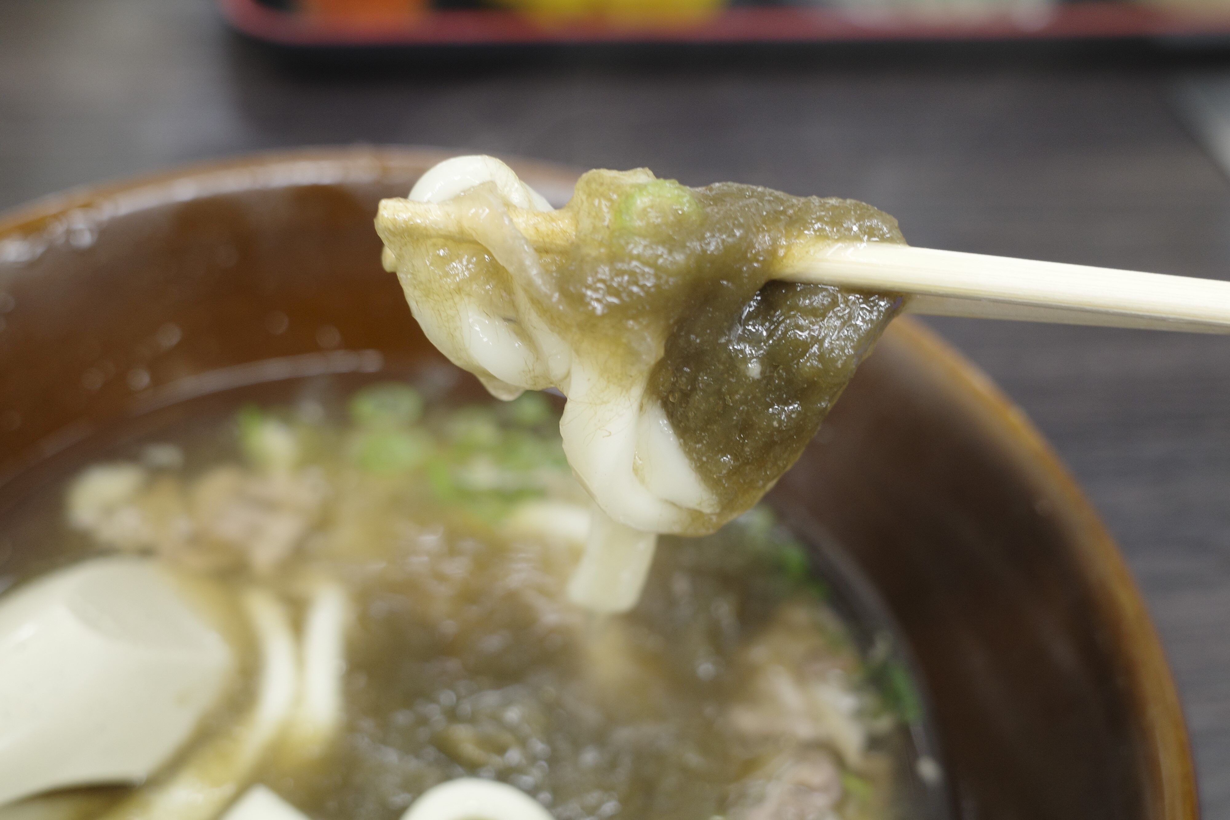 うどんは博多うどんのような柔らかくツヤがあり、濃厚な旨味を秘めたつゆも染みてウマウマ!
