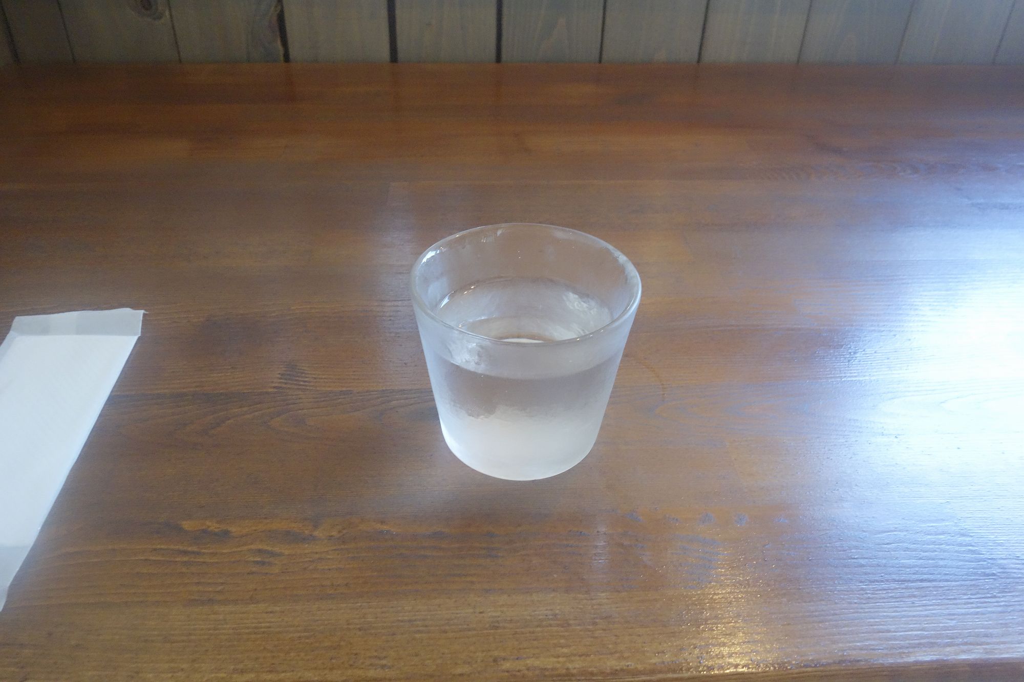 今回はコスタリカコーヒー600円を注文。まずは無料の水を飲んで喉を潤します。