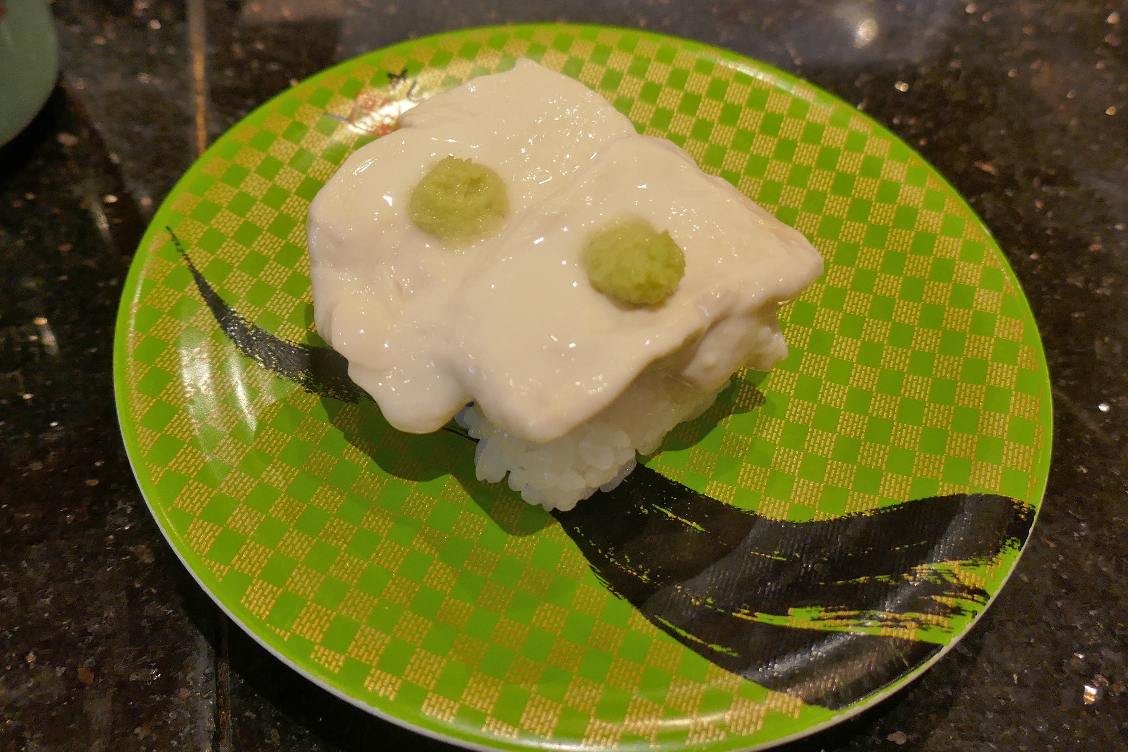 まずは、とろけるように柔らかい湯葉が酢飯やわさびにマッチした「ゆば」130円をぺろり!