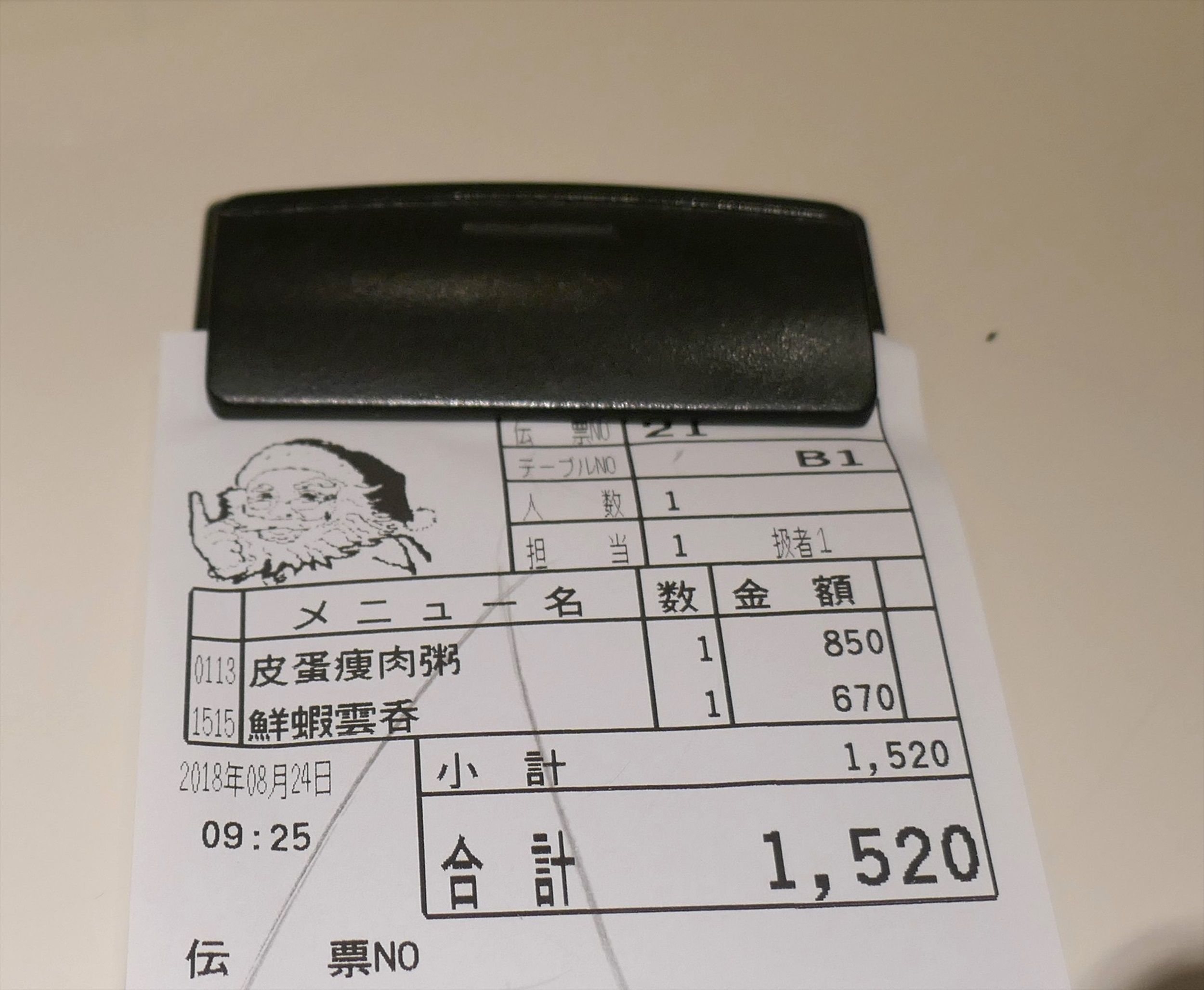 「ピータン粥」850円をオーダー。