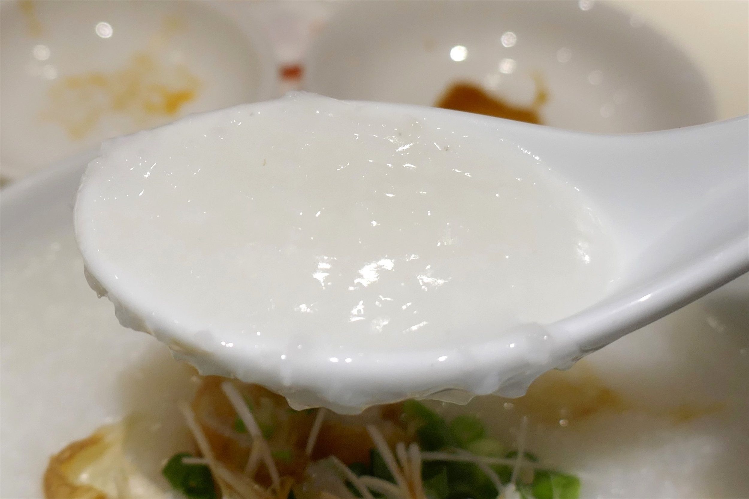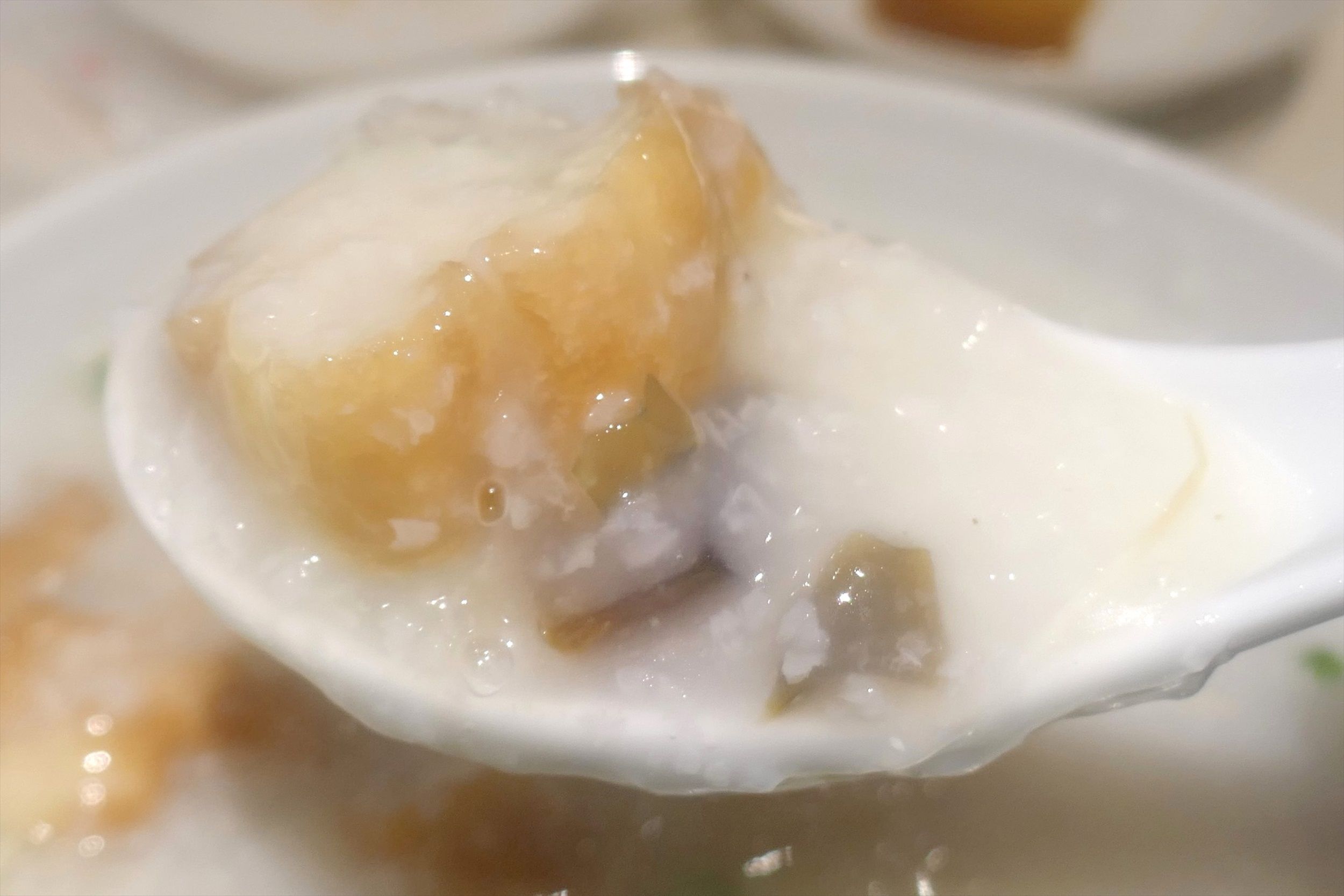 「ピータン粥」は具なしの状態で食べたとしても、熱々かつ魚介や鶏の出汁が効いてうまし!