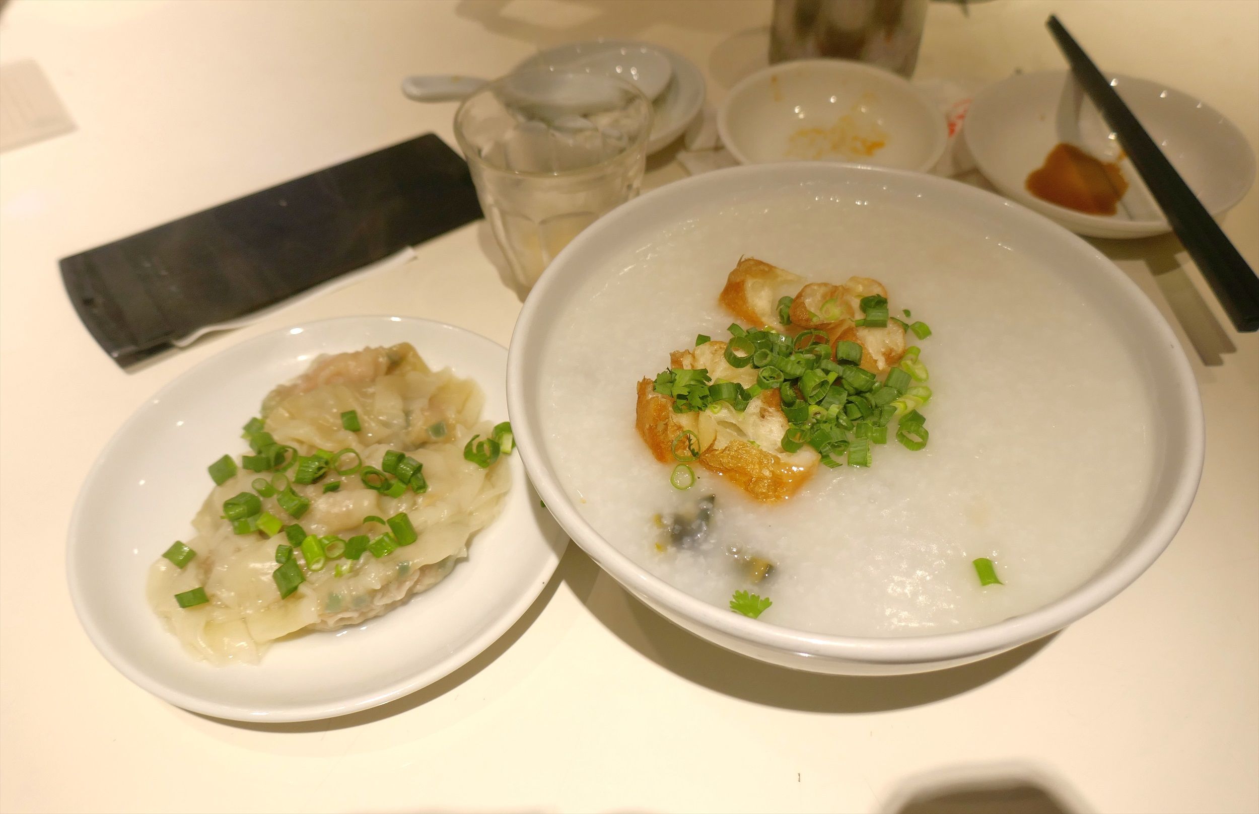 熱々な「ピータン粥」の前に冷えるのが早そうな「つけワンタン」をロックオン!