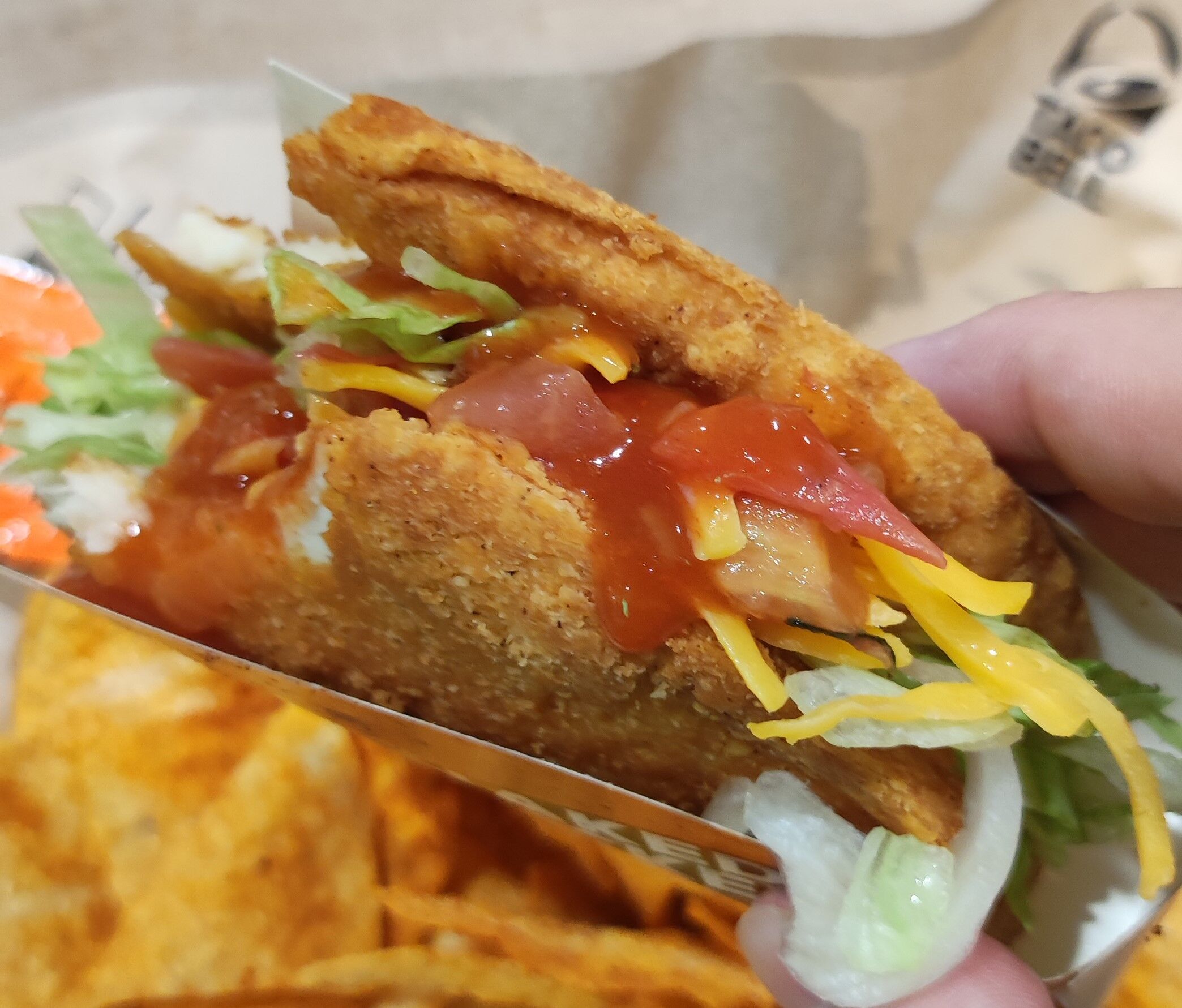 ちなみにメインの「ネイキッドチキン タコ」は鶏肉部分が分厚く重量感も中々のもの!