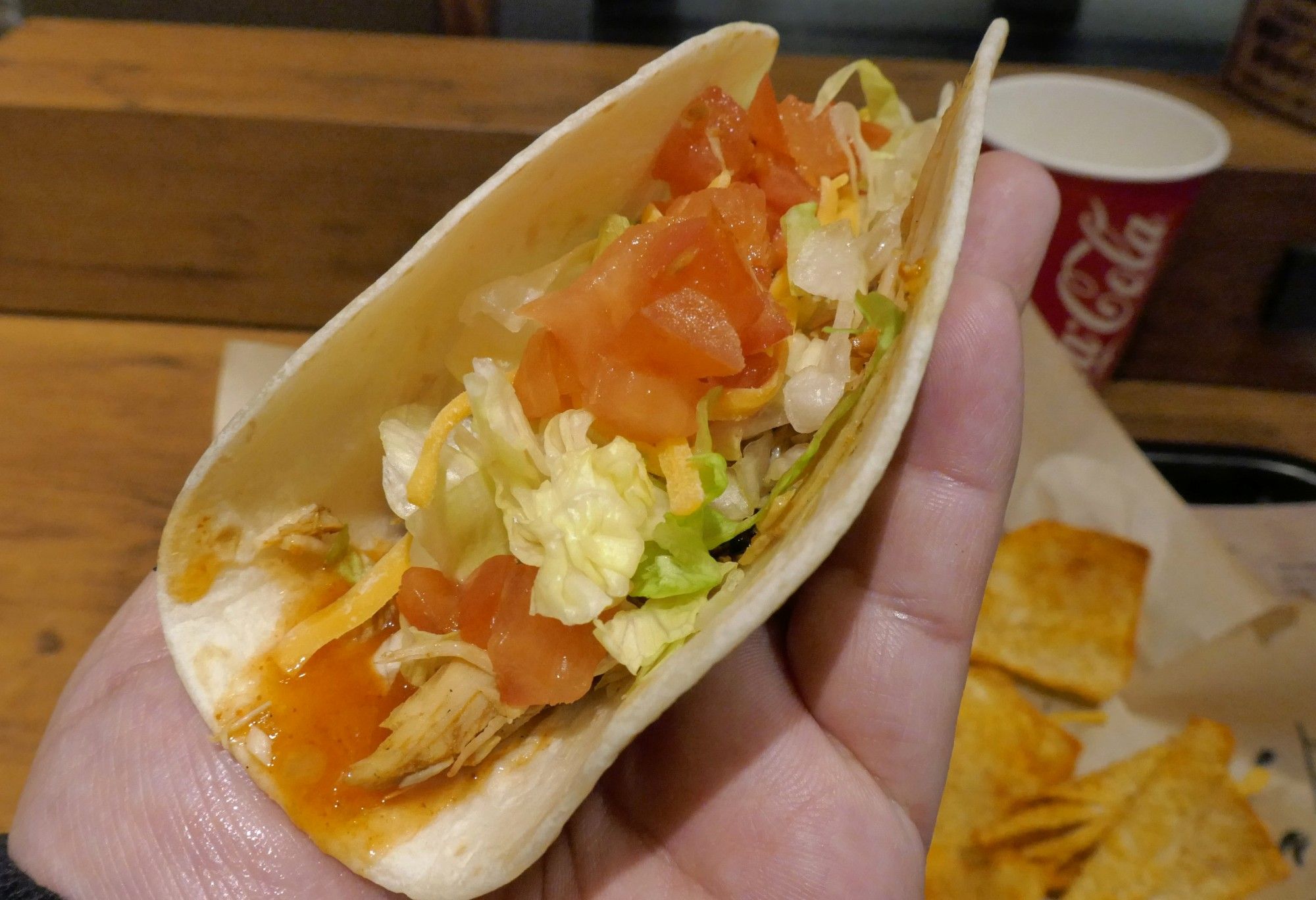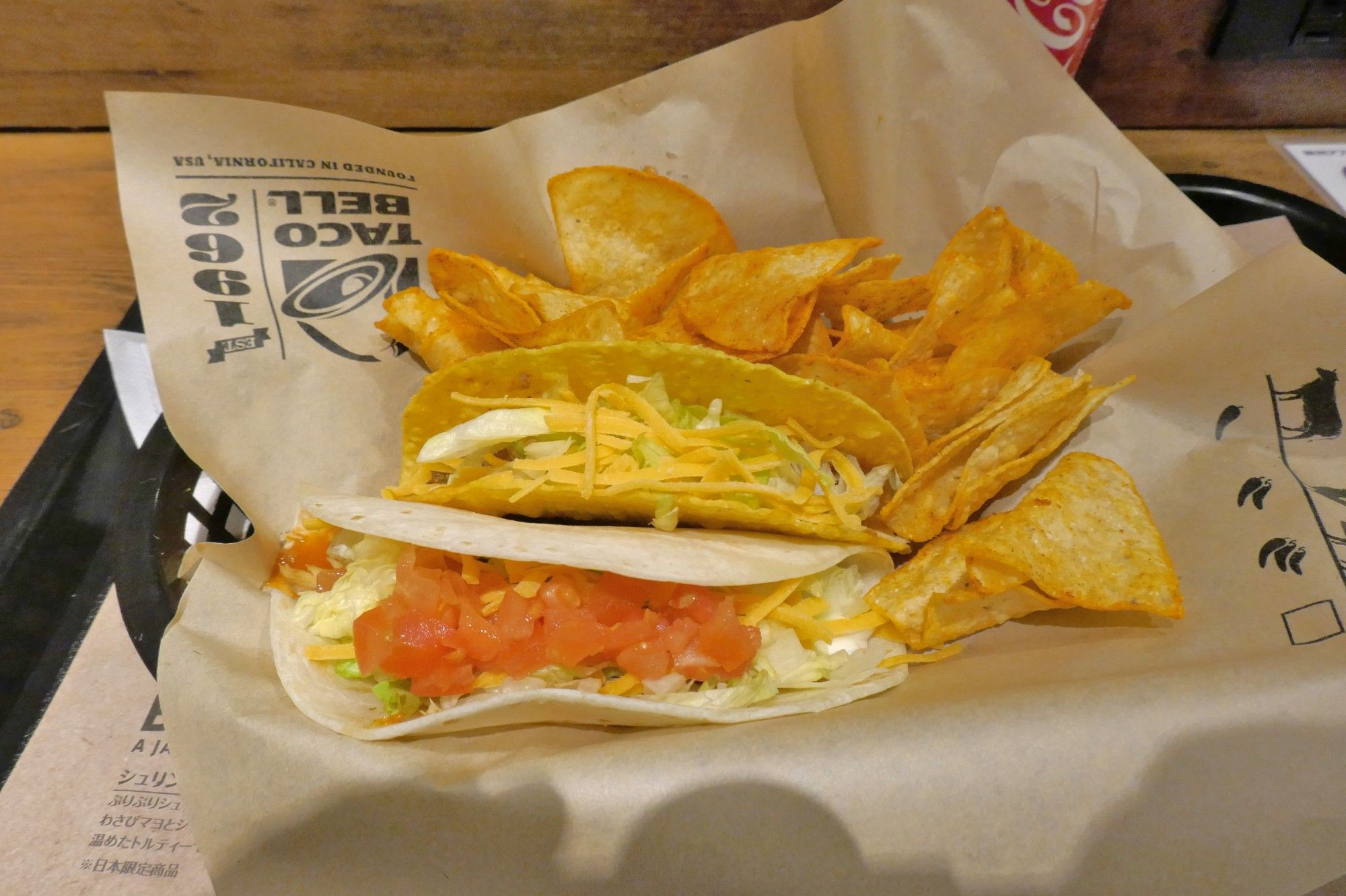 今回は2タコスコンボ(ハードシェルにはビーフ、ソフトシェルにはチキンをチョイス)を注文。