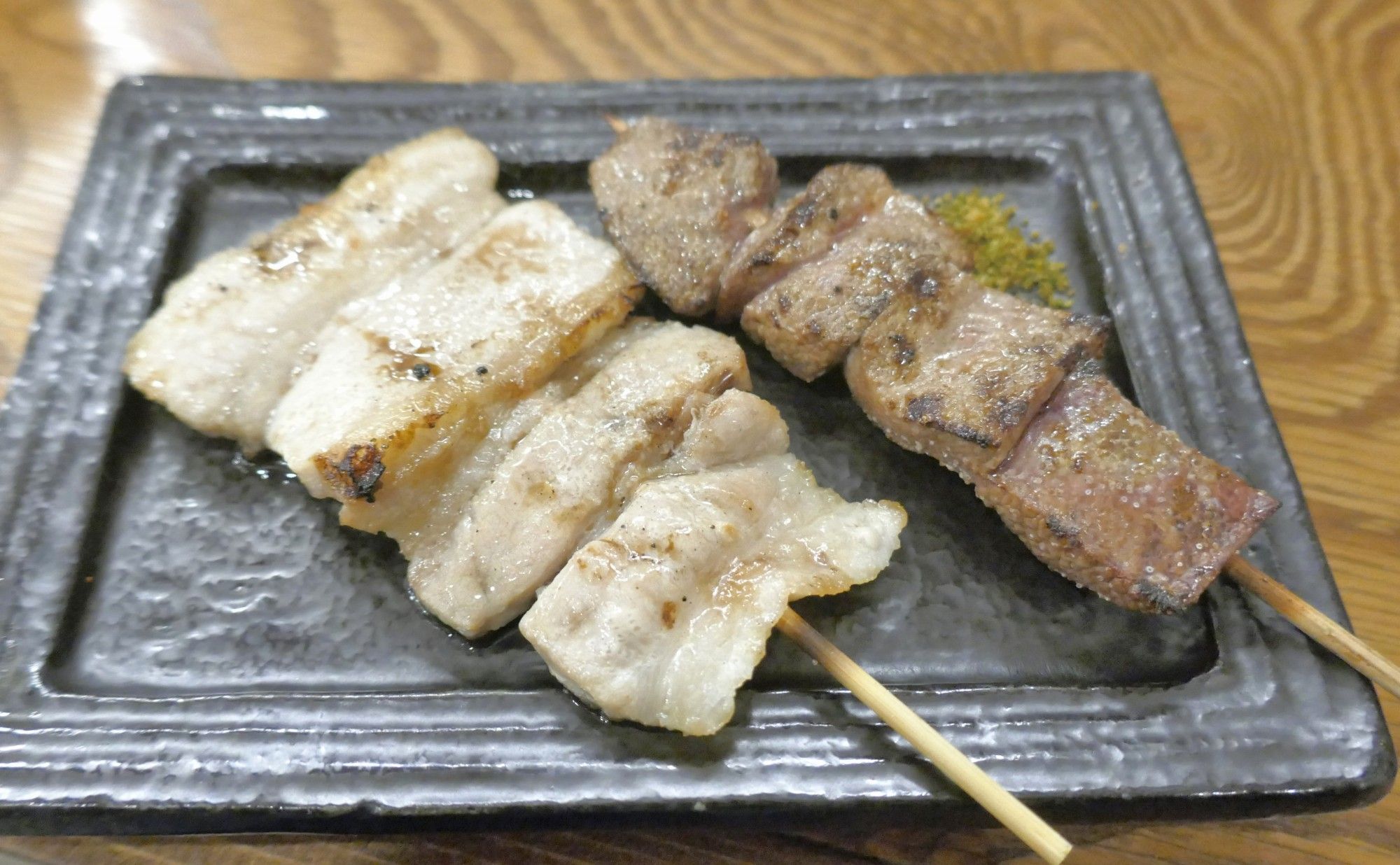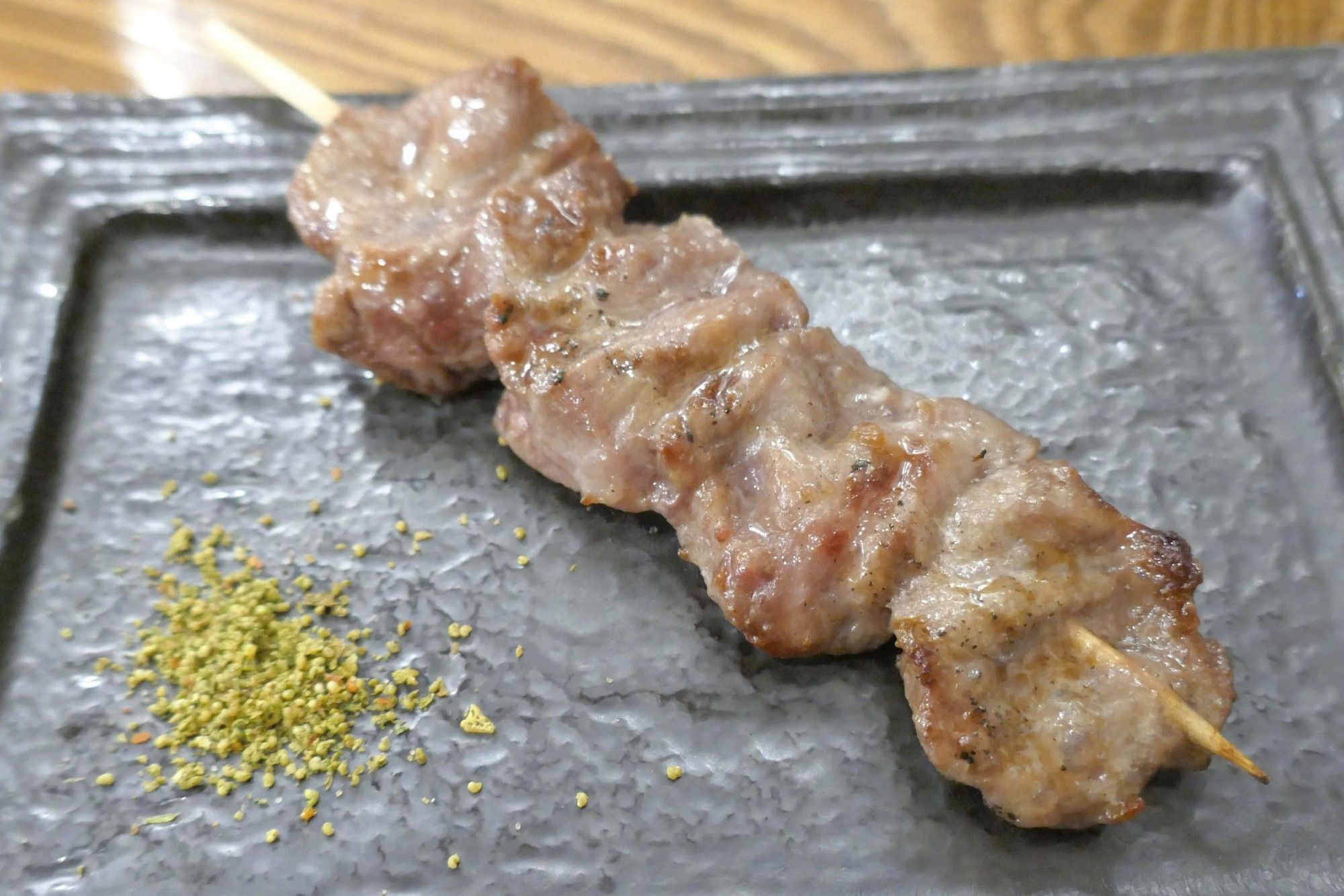 続いては串焼きメニューを色々と注文(全て90円)。注文したのはカシラ