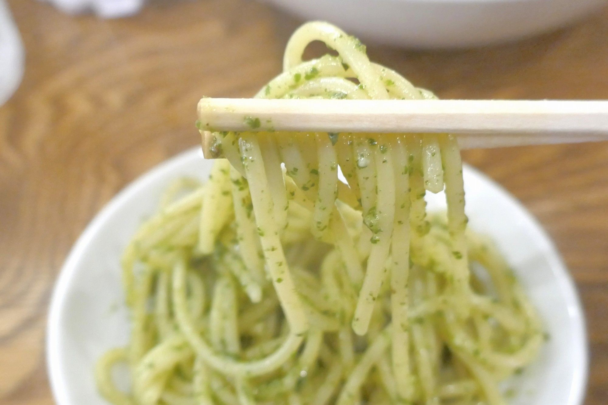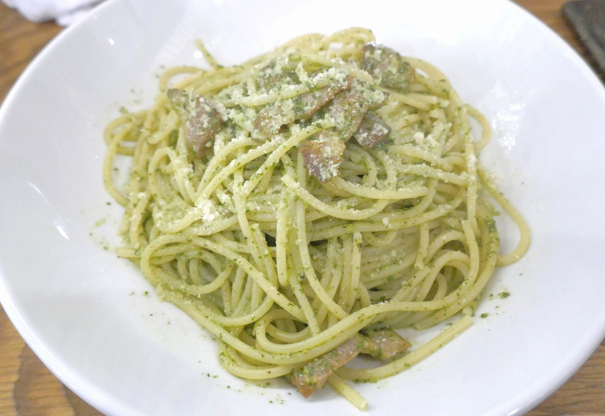 最後はシメものとして「大葉とベーコンのジェノベーゼ」680円を注文。