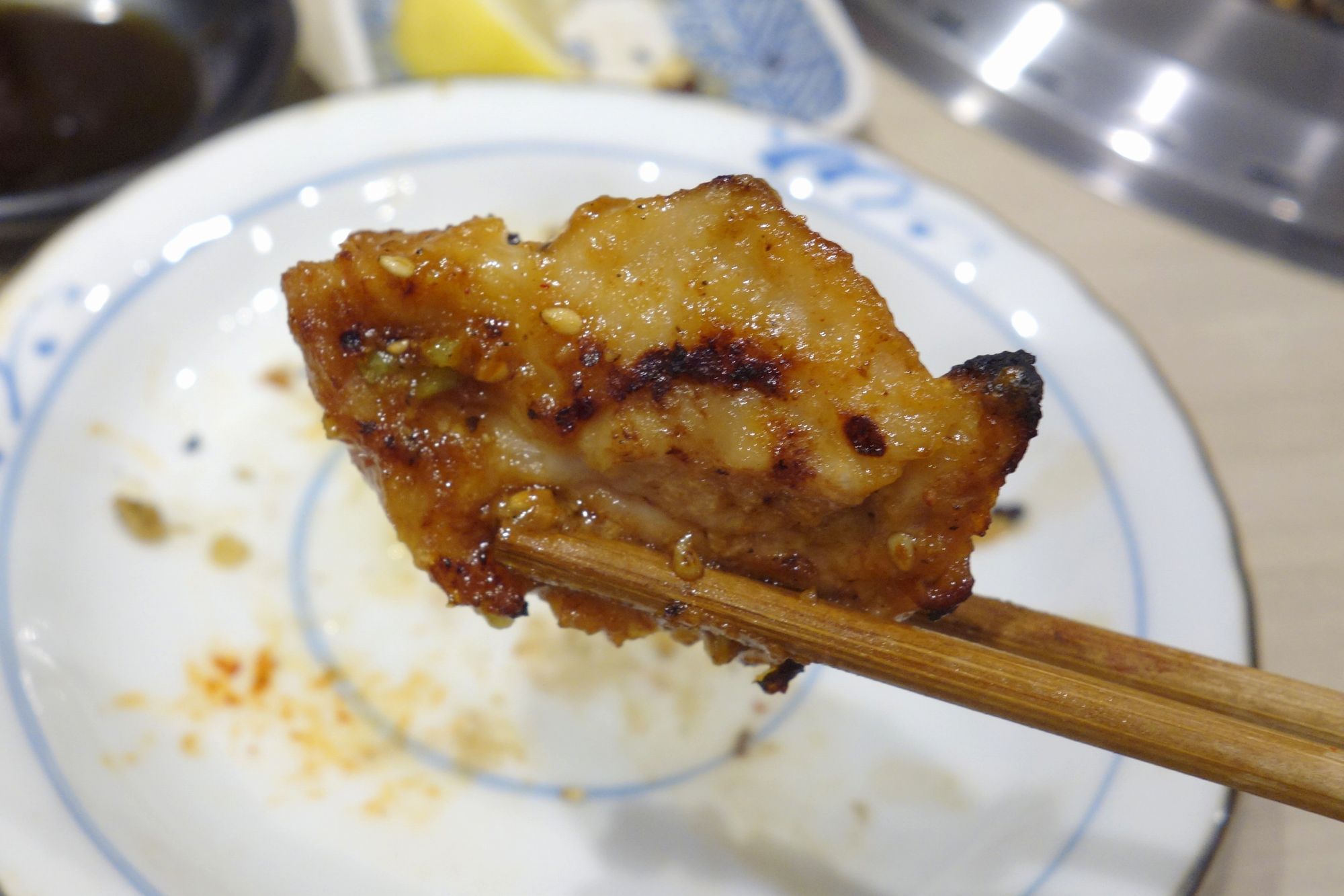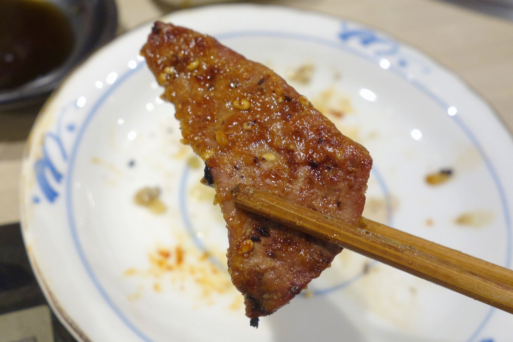 続いて注文した豚バラは、脂の存在感がデカイ一品で