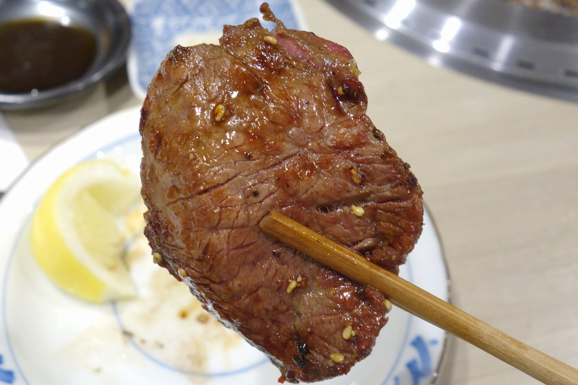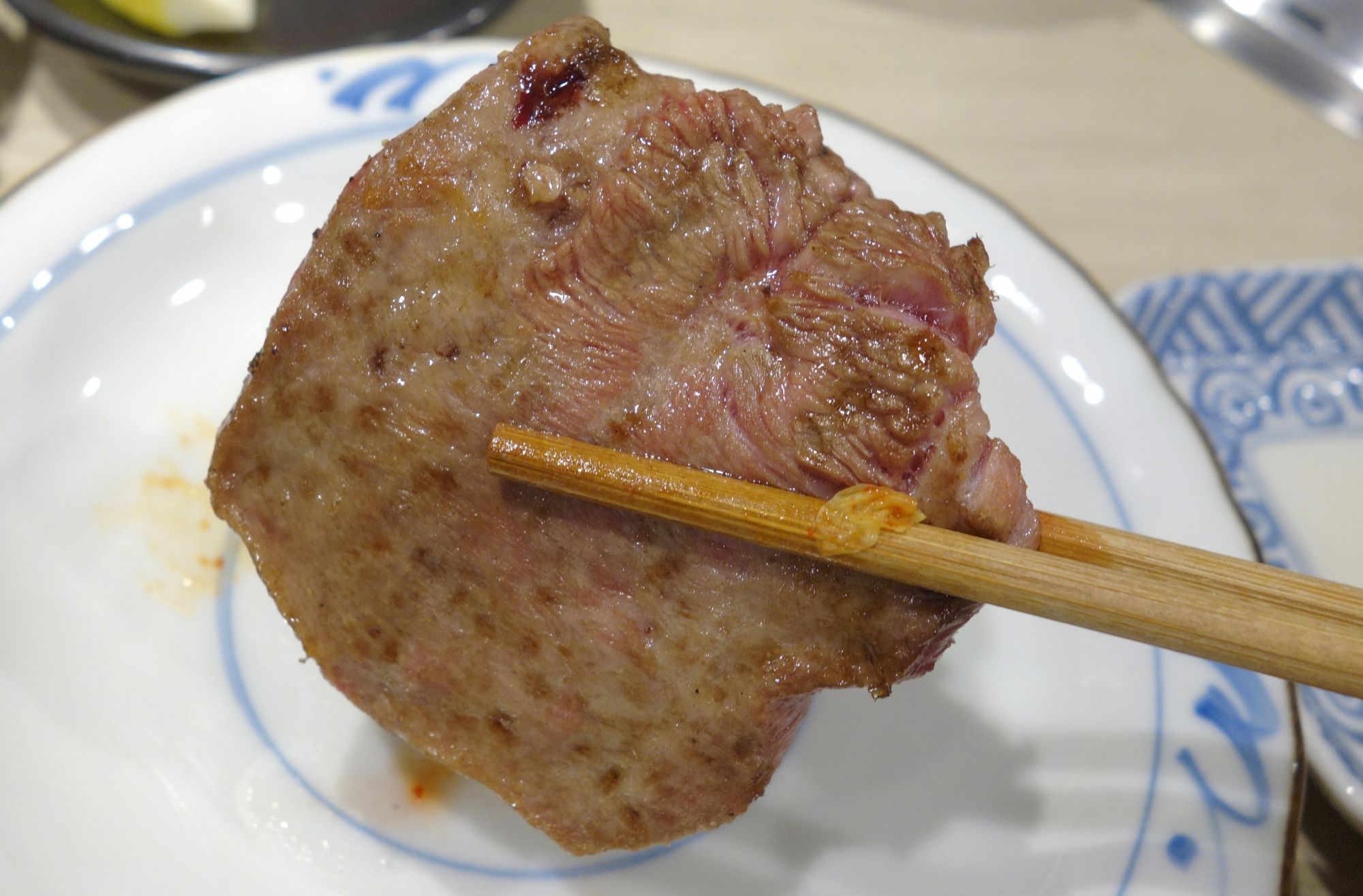 焼きあがったタンを食べてみると、分厚い見た目に比例して旨味たっぷりでビックリ!