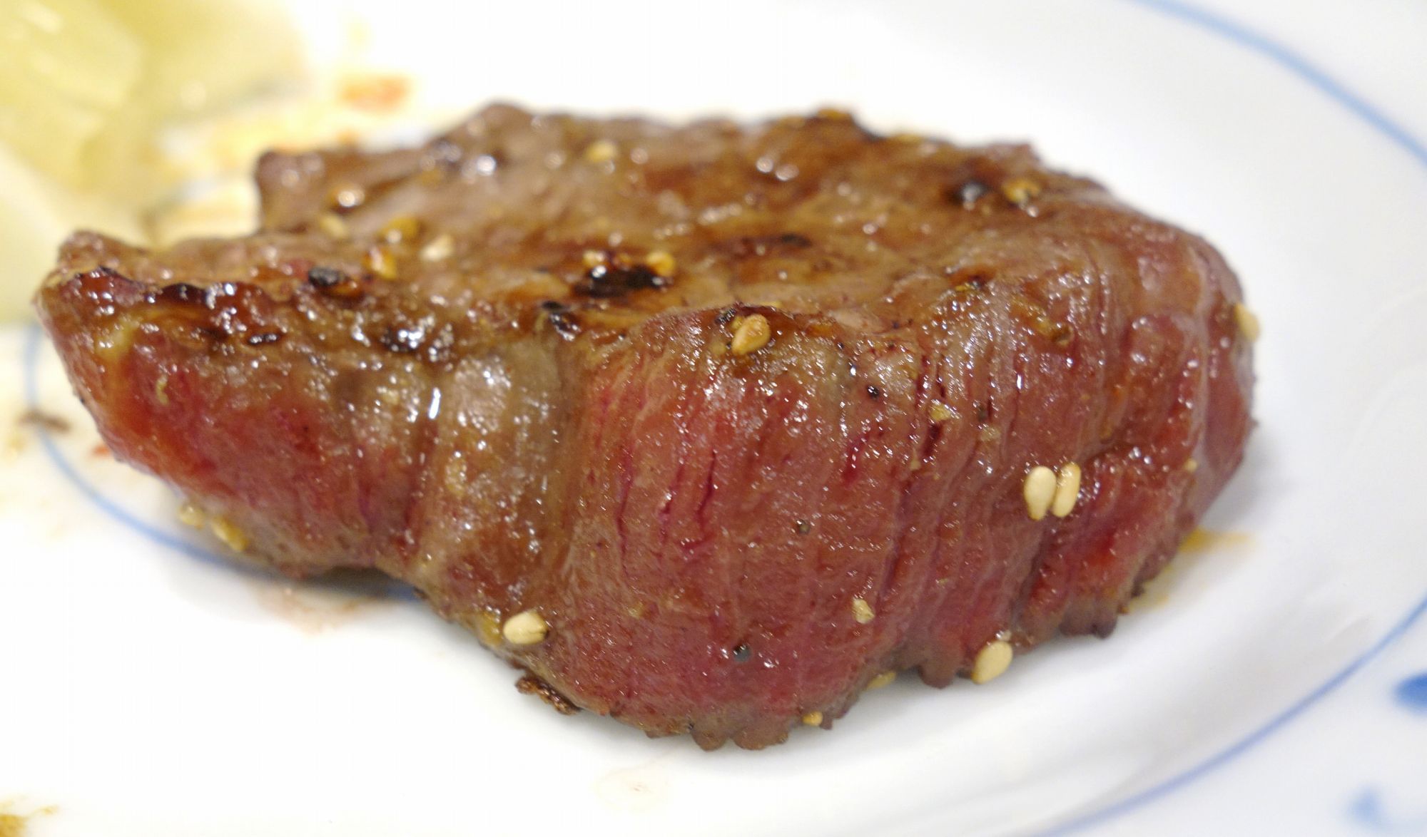 赤身部分が目立つロースは、レアな感じが残る感じで焼いていきます。