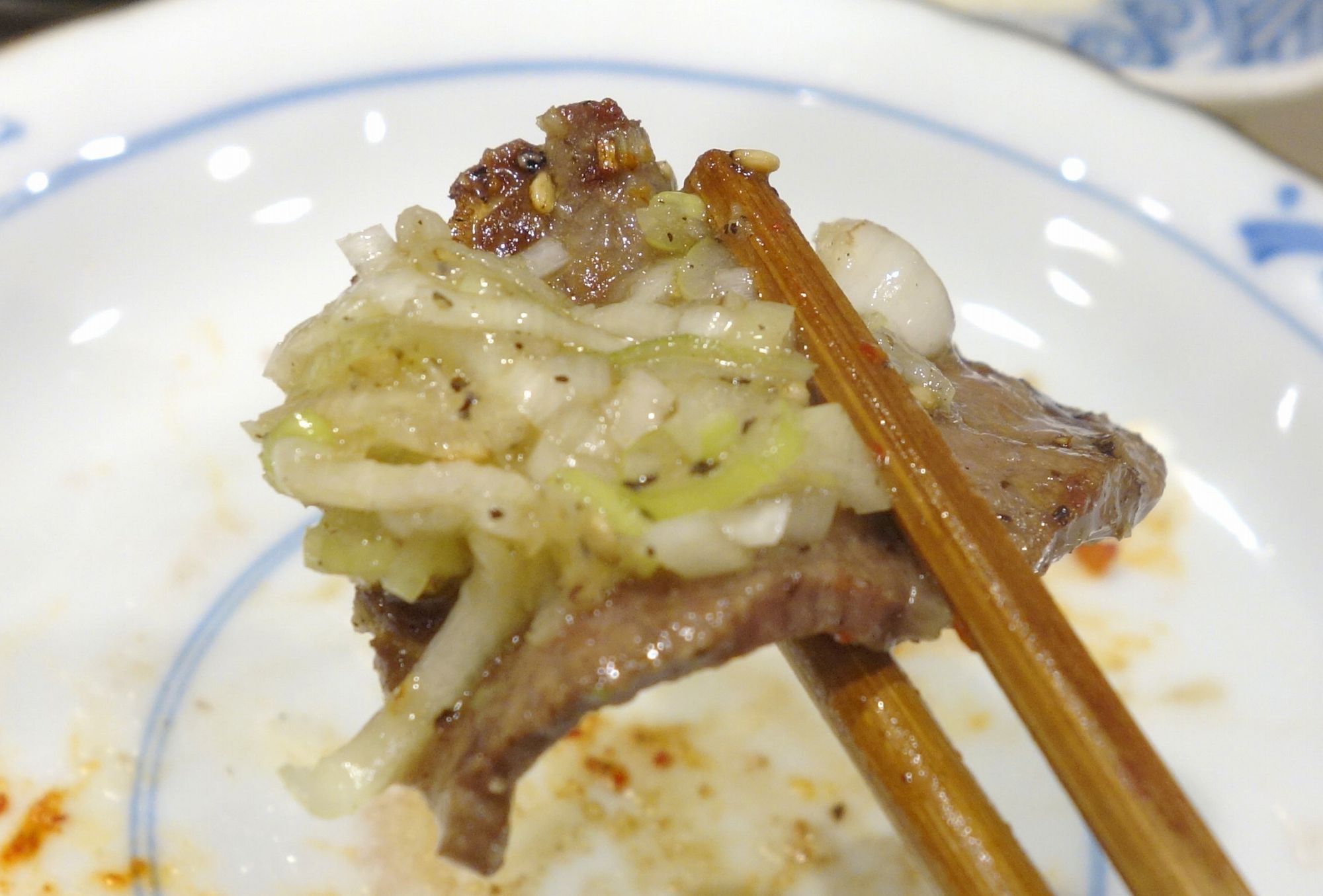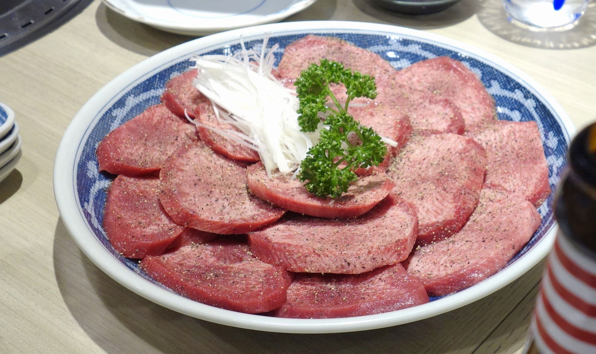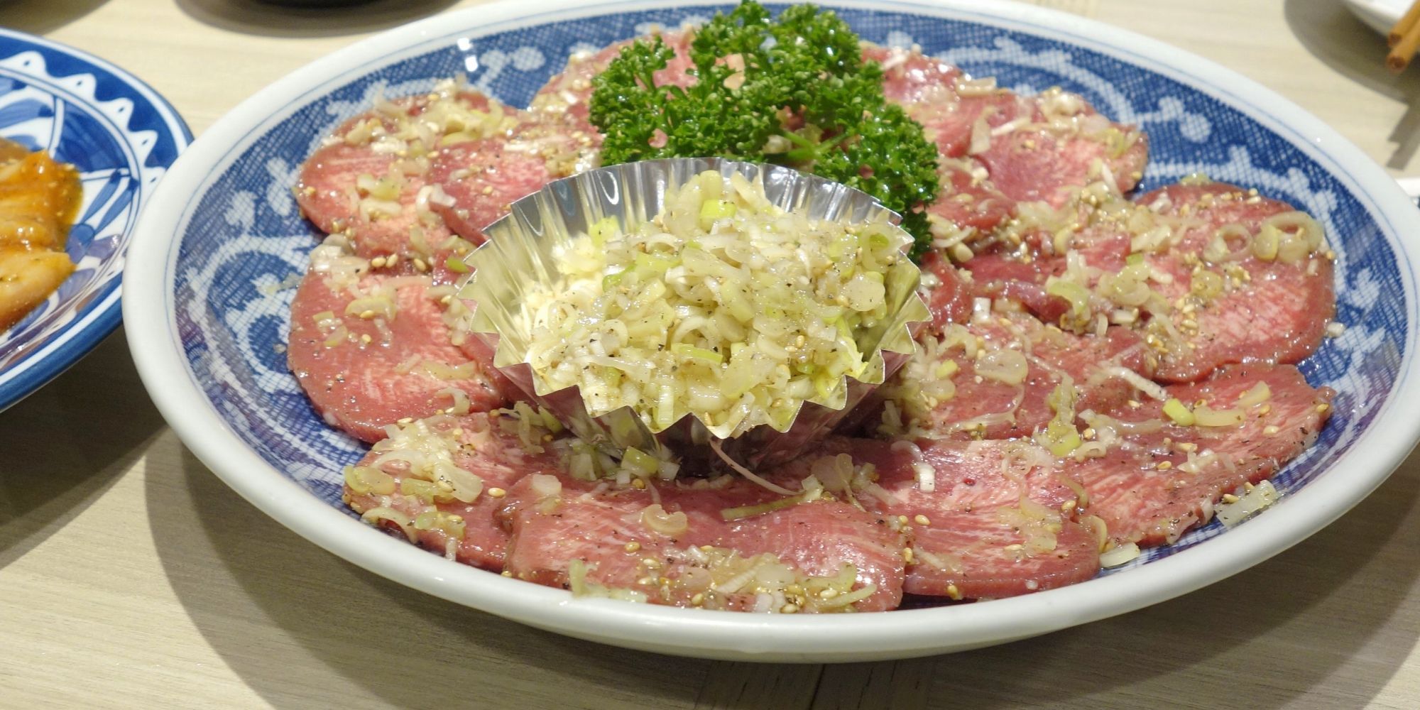 ネギ塩タン1200円を注文。ネギ塩は別皿でも用意されているのがポイント高しです。