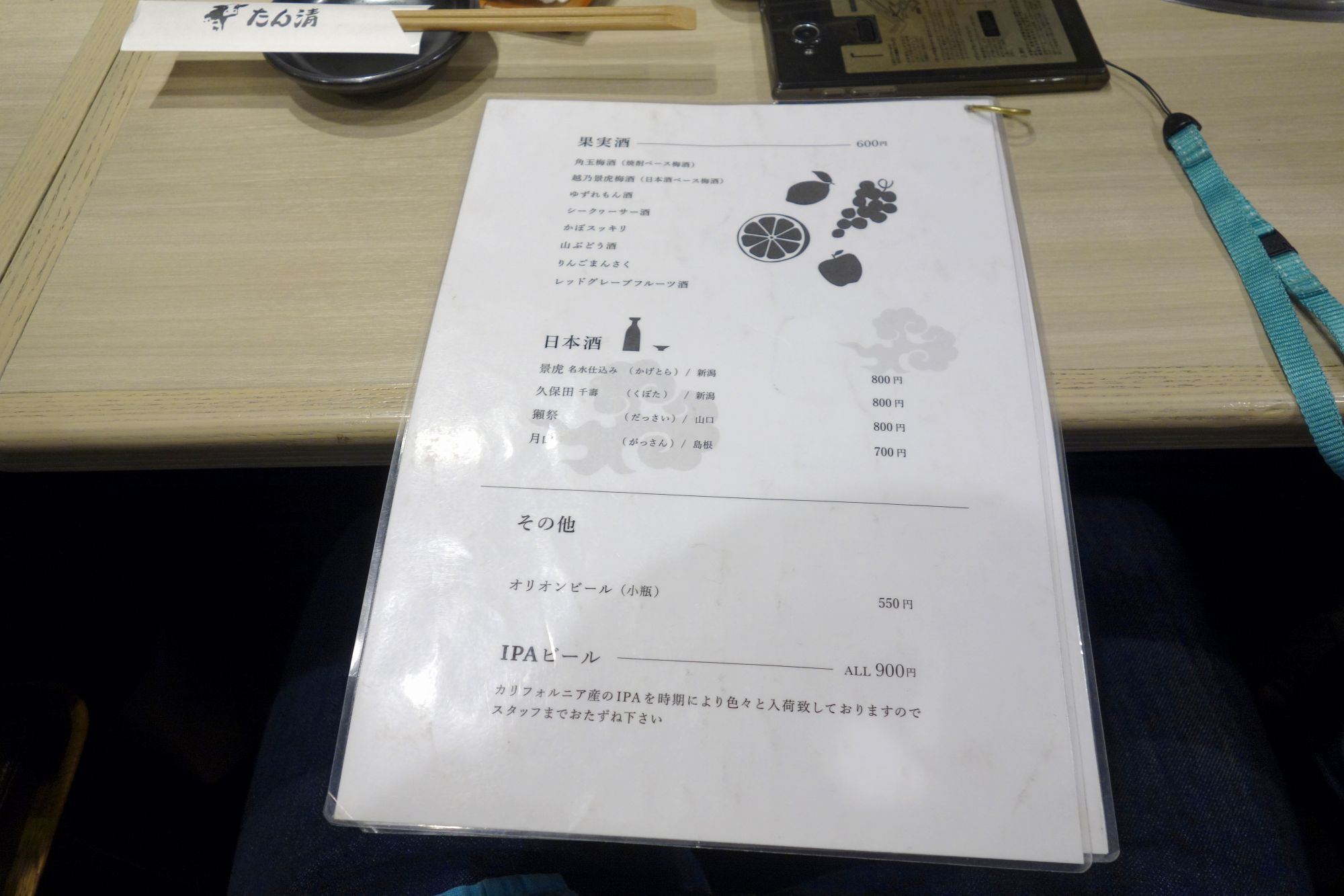 果実酒、日本酒、オリオンビール、IPAビールで以上です。
