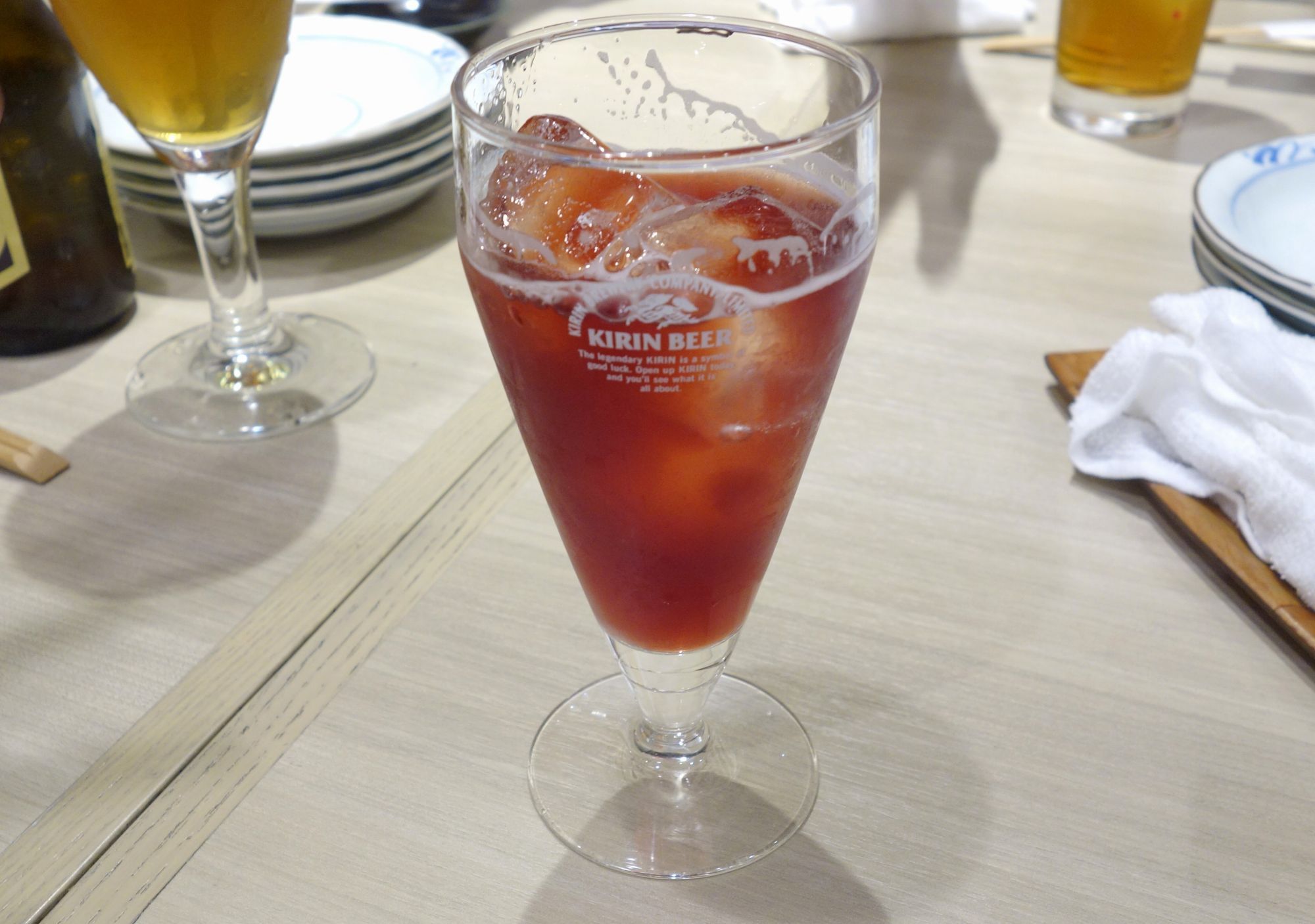 まずはチェリーの風味が効いて甘くて飲みやすいリーフマン700円をごくごくと飲み