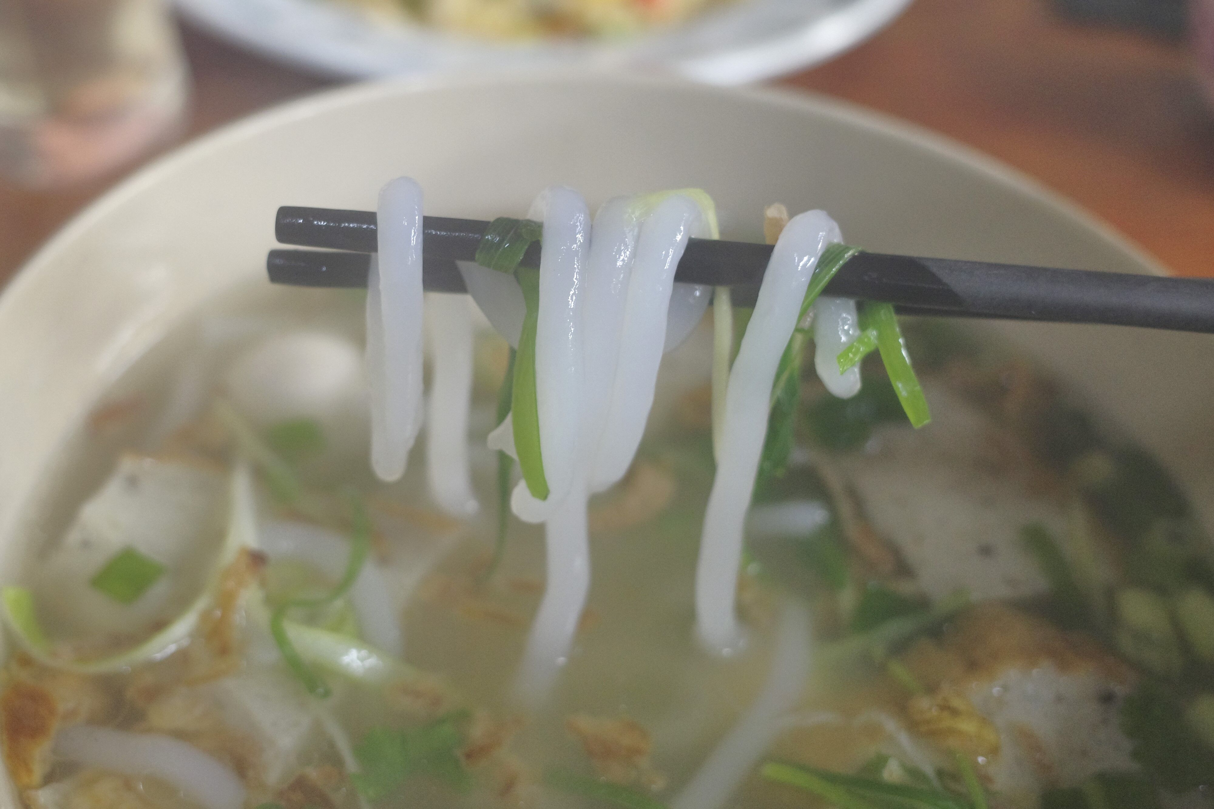 バンカンは透明感のあるうどんのようなビジュアルの麺で、適度なコシとモチモチ感が重なり合って食感もナイス!